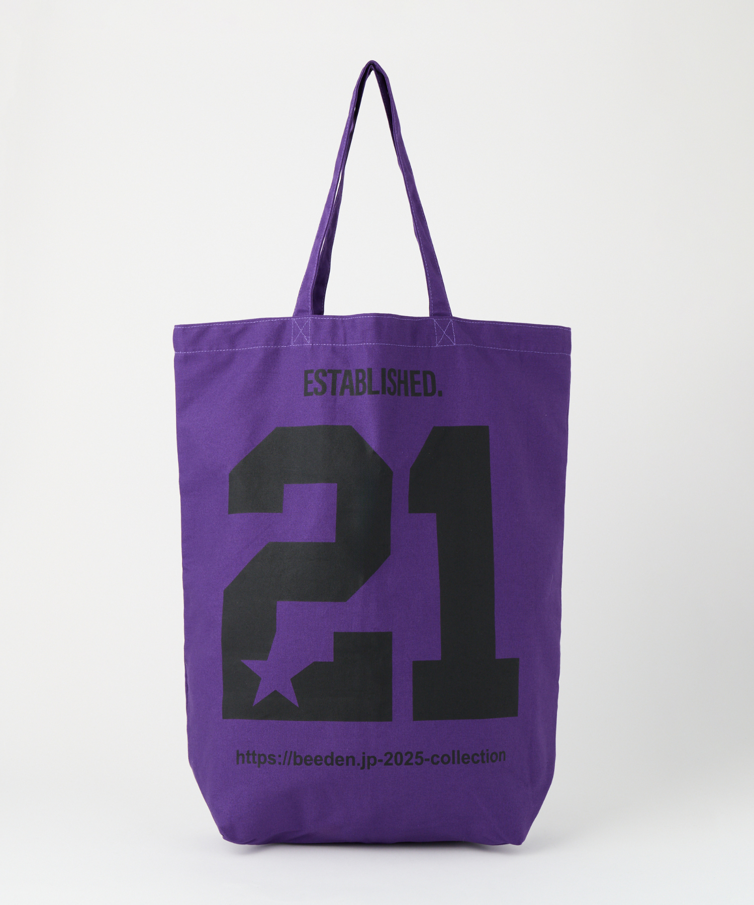 ブランドロゴとコンセプトメッセージを大胆にプリントし、「21」のナンバリングとウェブリンクをあしらった、BEEDNの世界観が特徴です。