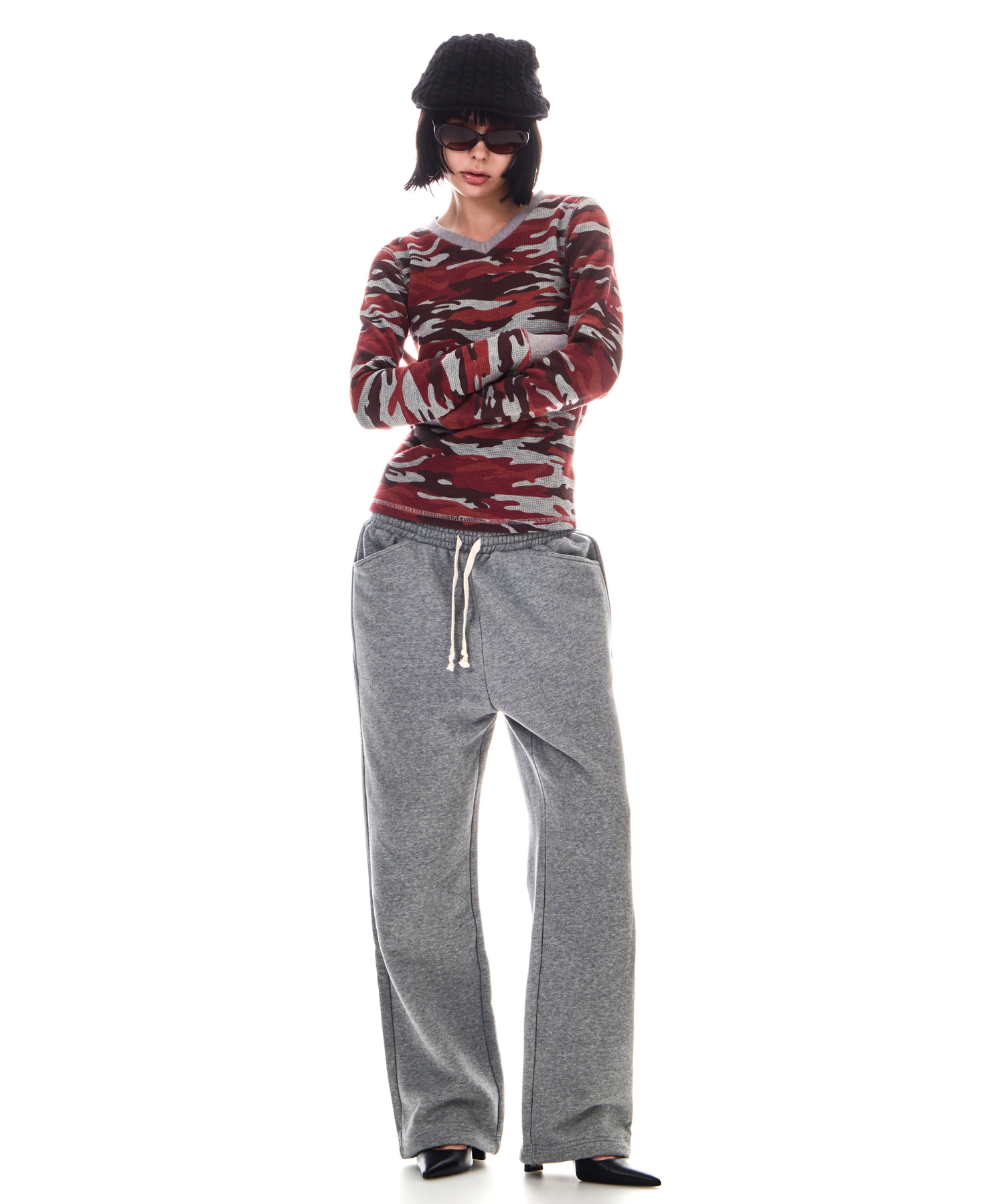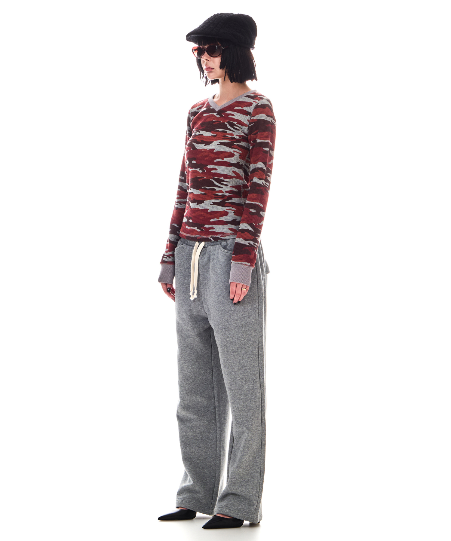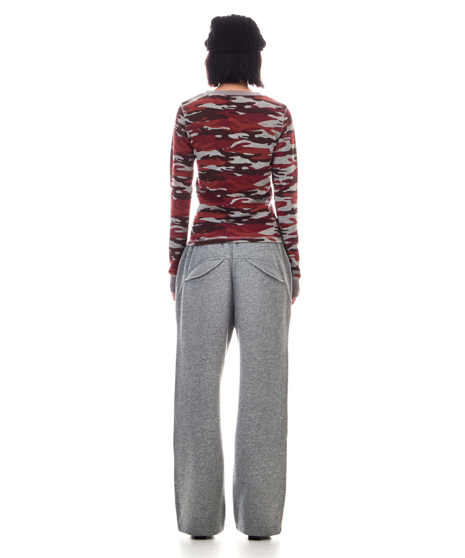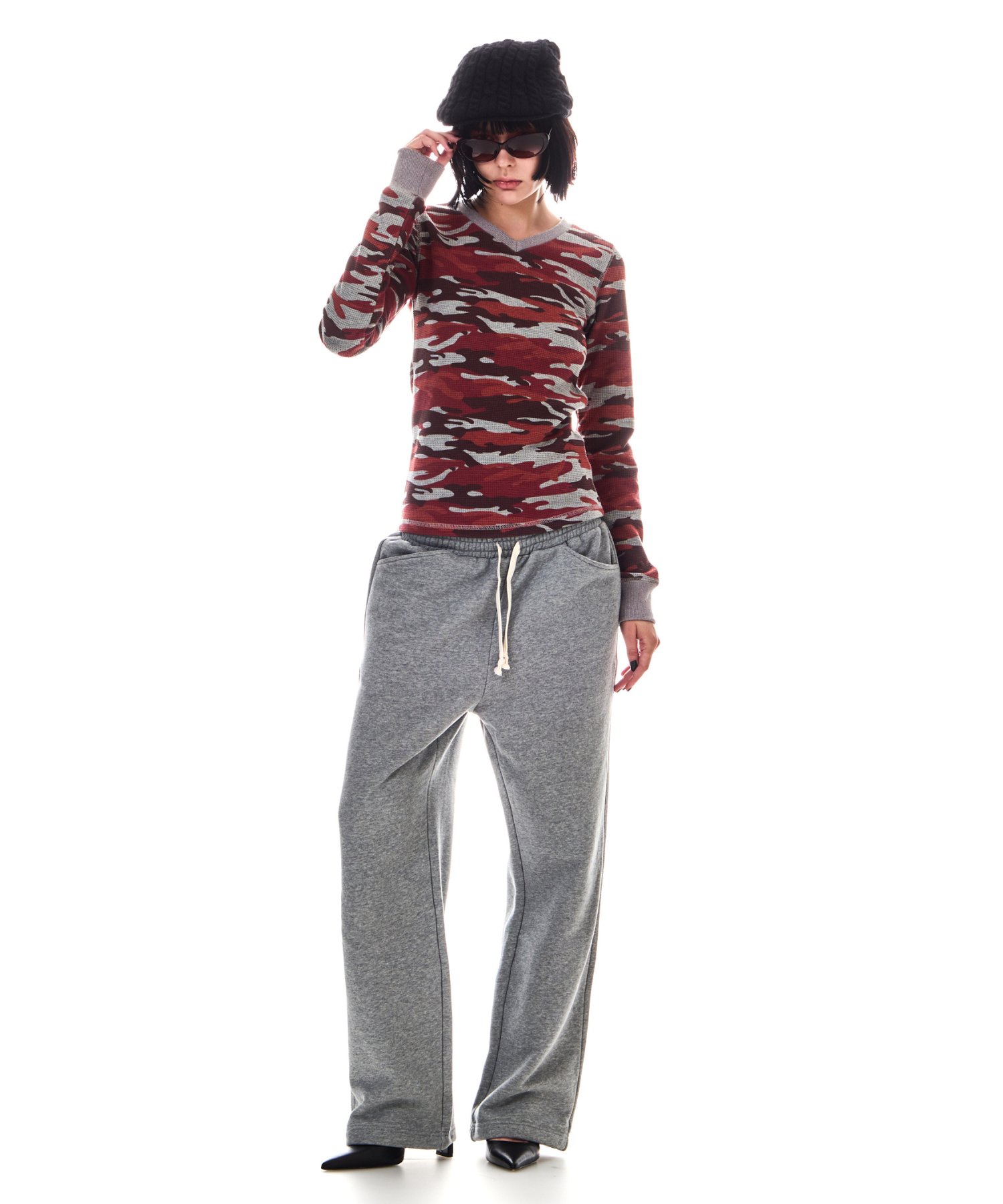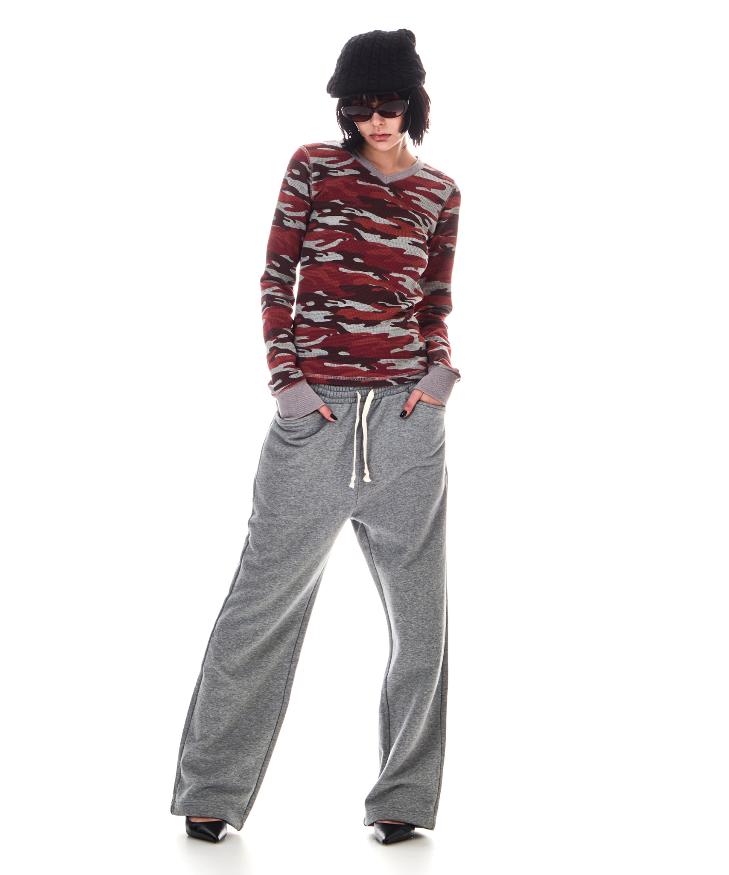 メンズライクなオンスのワッフル生地にオリジナル配色のカモ柄をプリントしたジャストフィットトップス。
