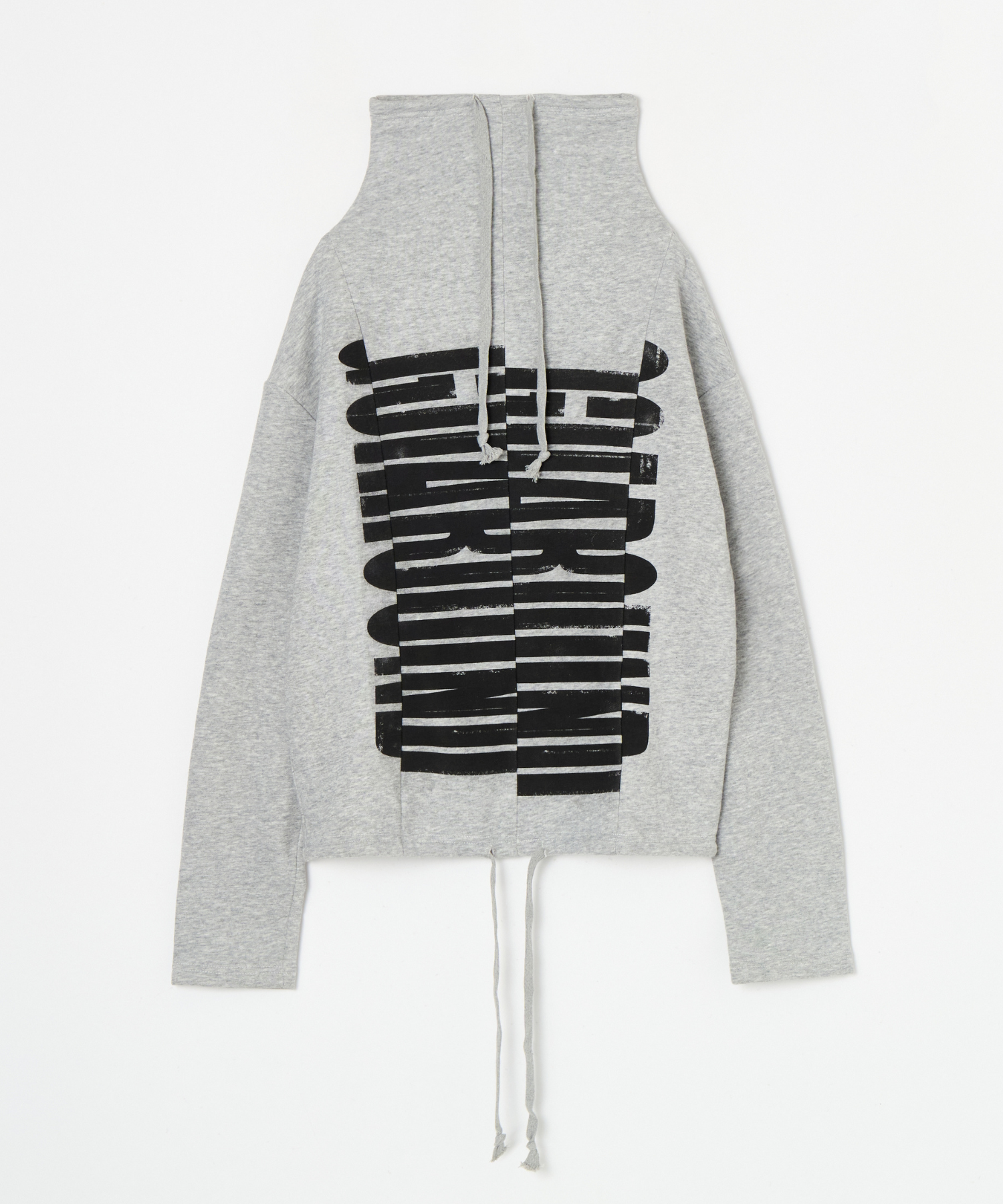 フロントの敢えてずらしたロゴプリントがキャッチーなボトルネックプルオーバー。