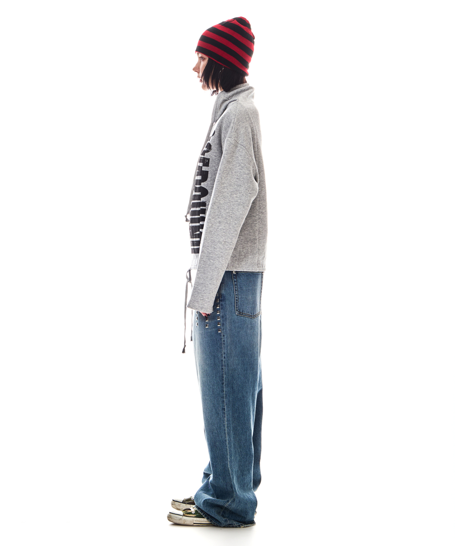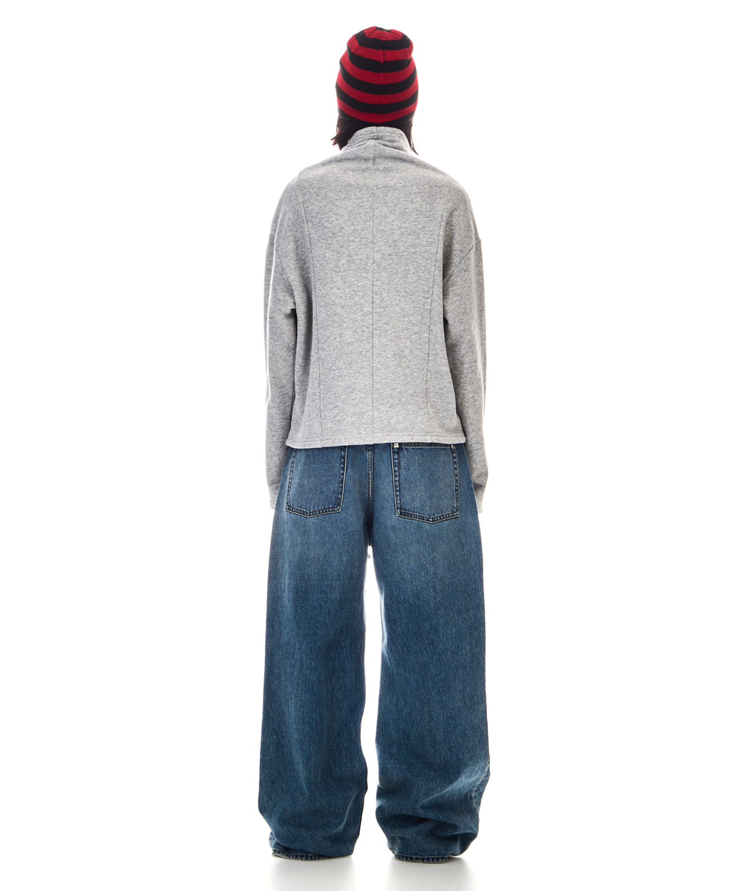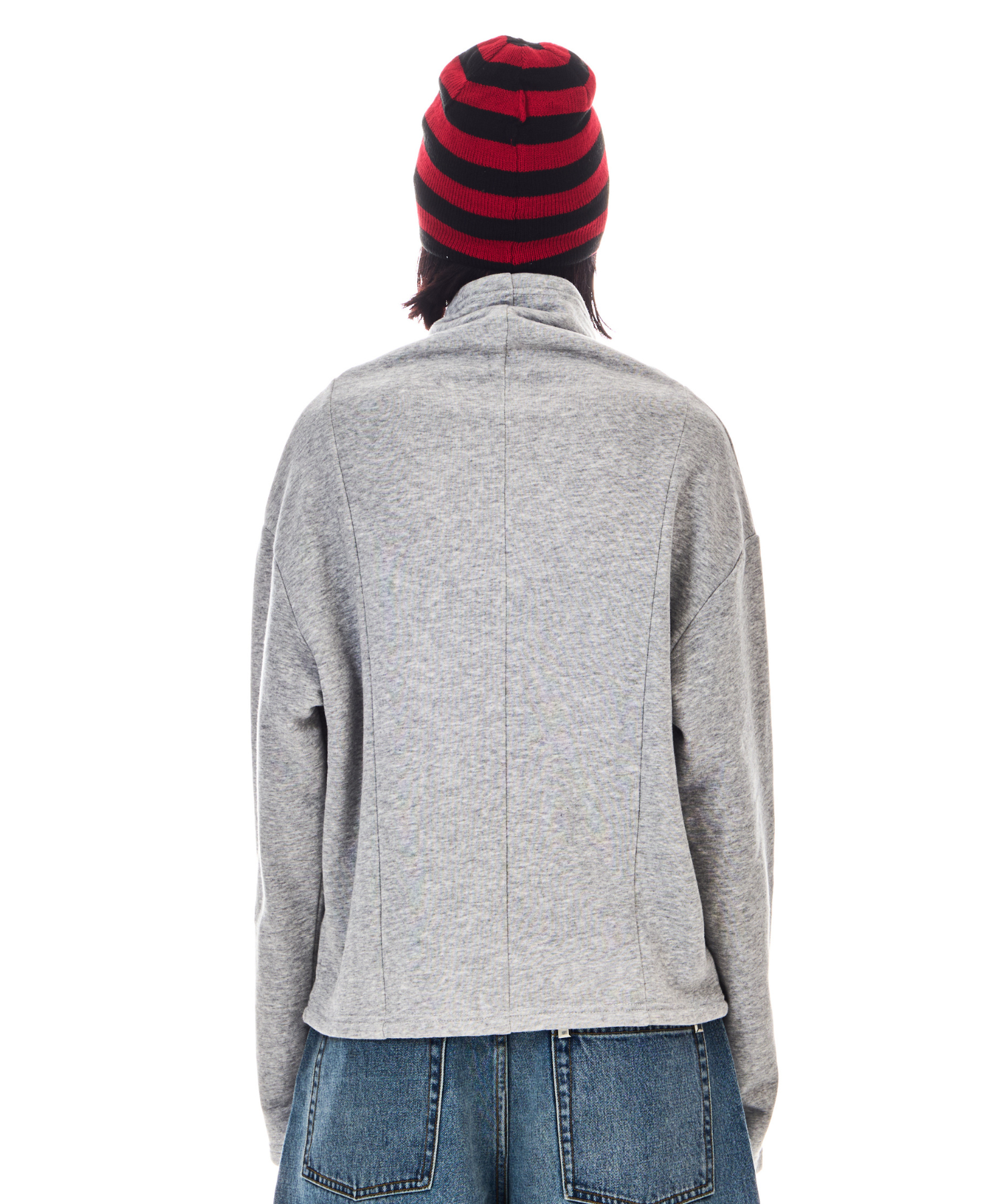 やや落ち感のある裏毛を採用し、ネック部分がクシュっと自然に下がるようにし、高さのあるネックが得意でない方にも着用いただけるようにしました。