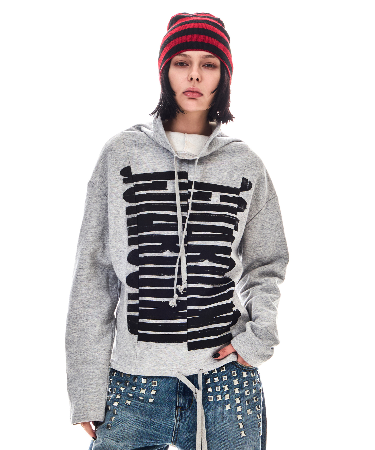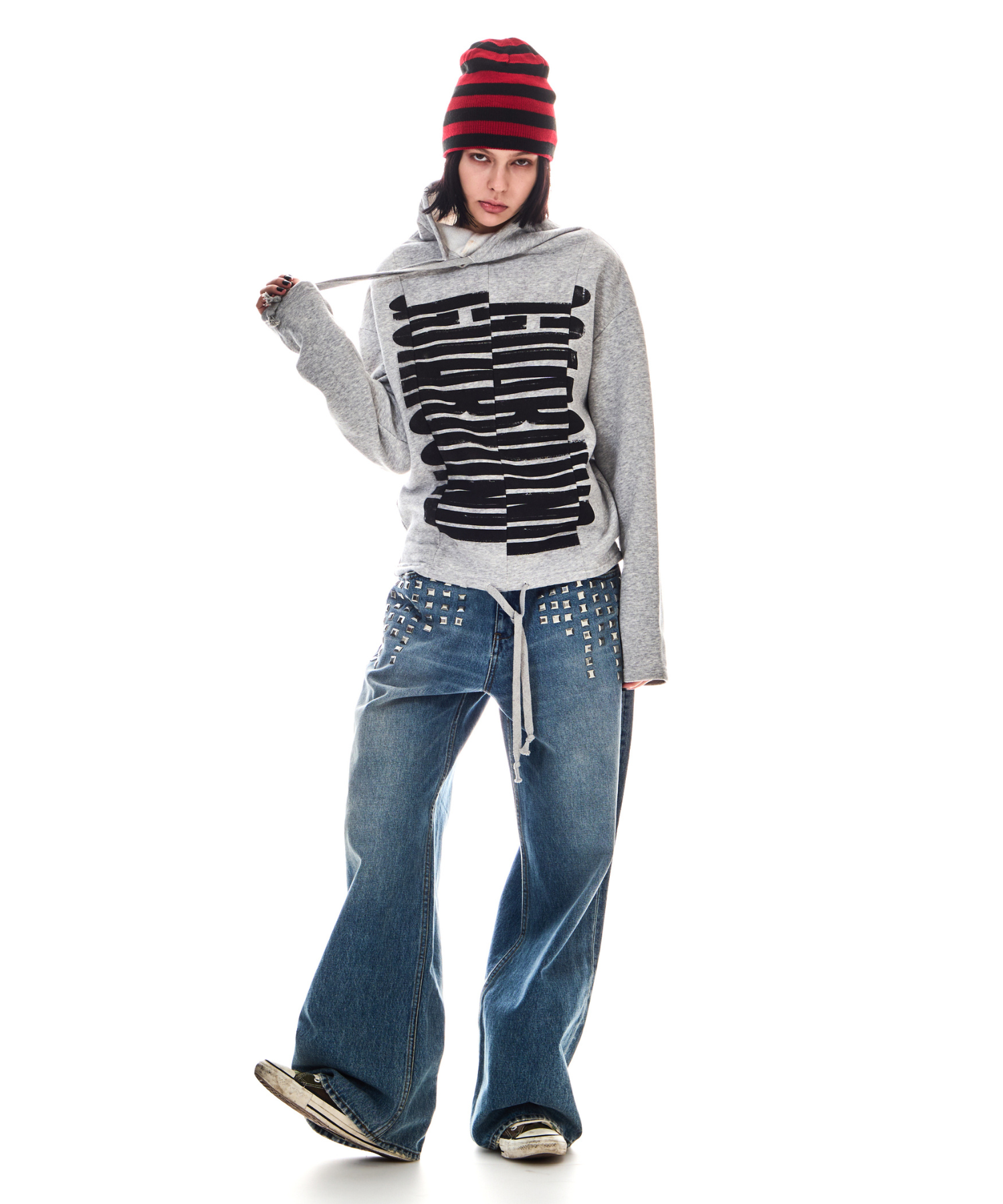 ネックと裾にはお好みで幅を調整していただけるよう紐を通し、様々な着こなしが可能です。