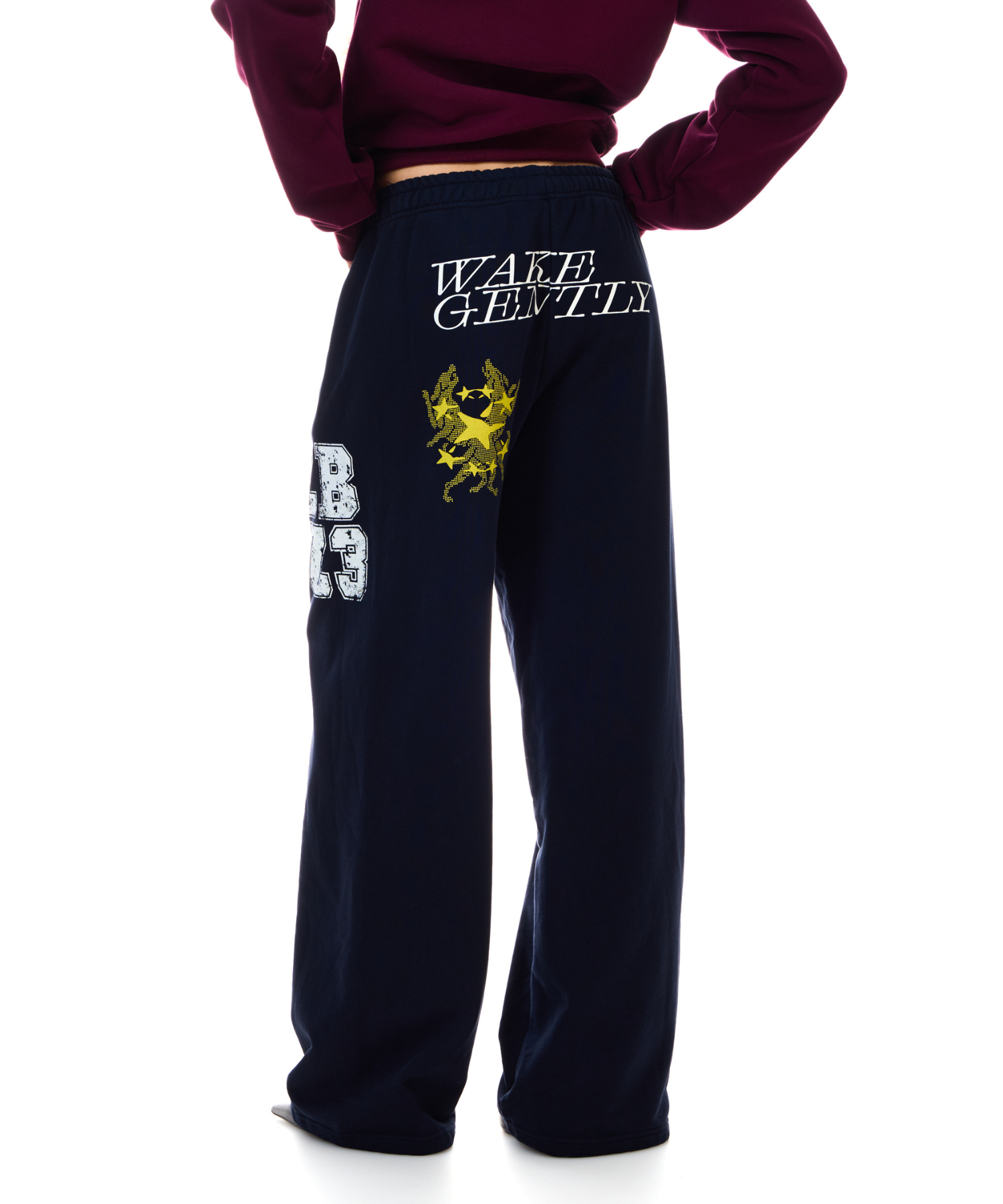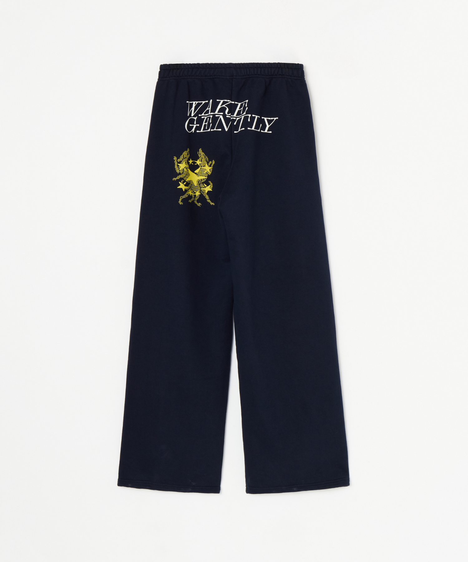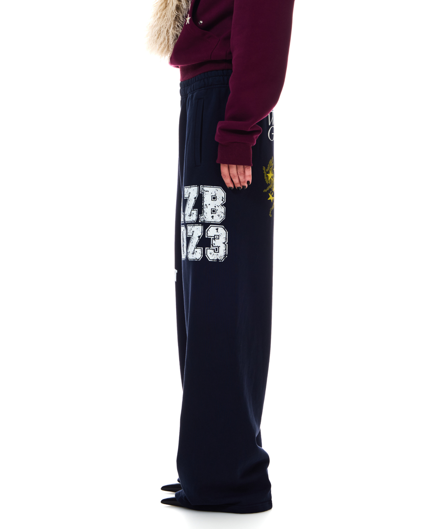 ランダムに配置されたオリジナルグラフィックプリントが斬新なスウェットパンツ。
