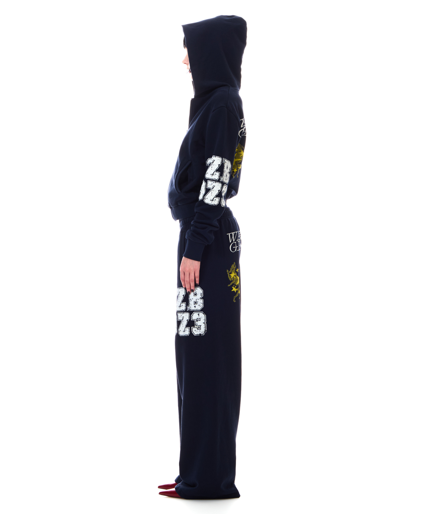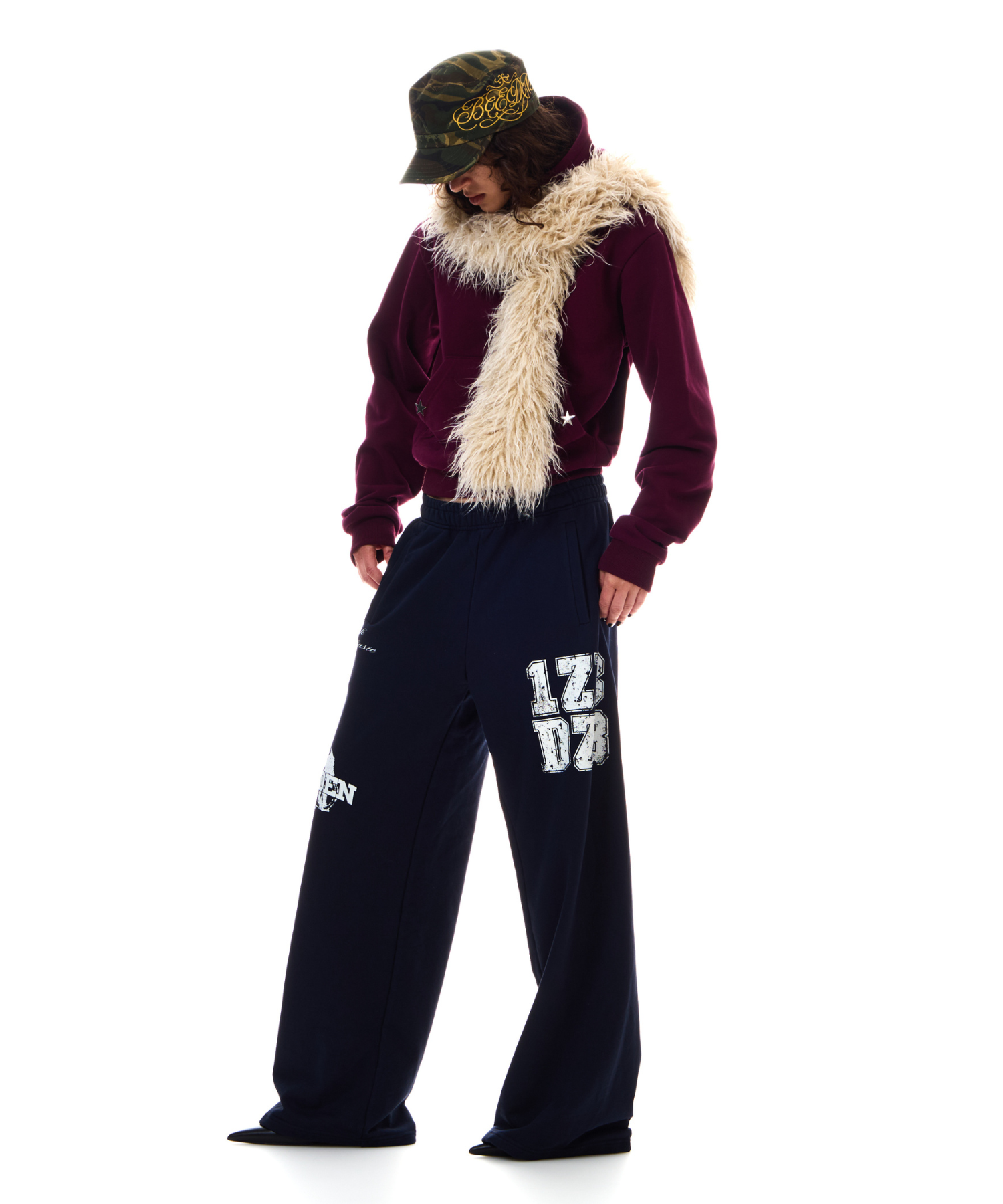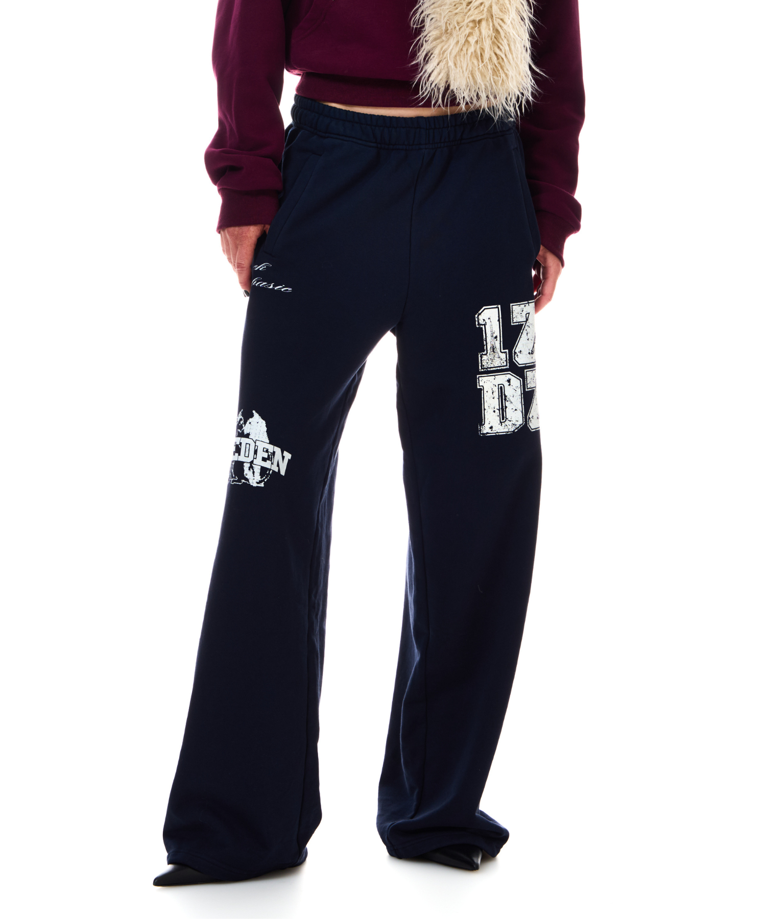 ランダムに配置されたオリジナルグラフィックプリントが斬新なスウェットパンツ。