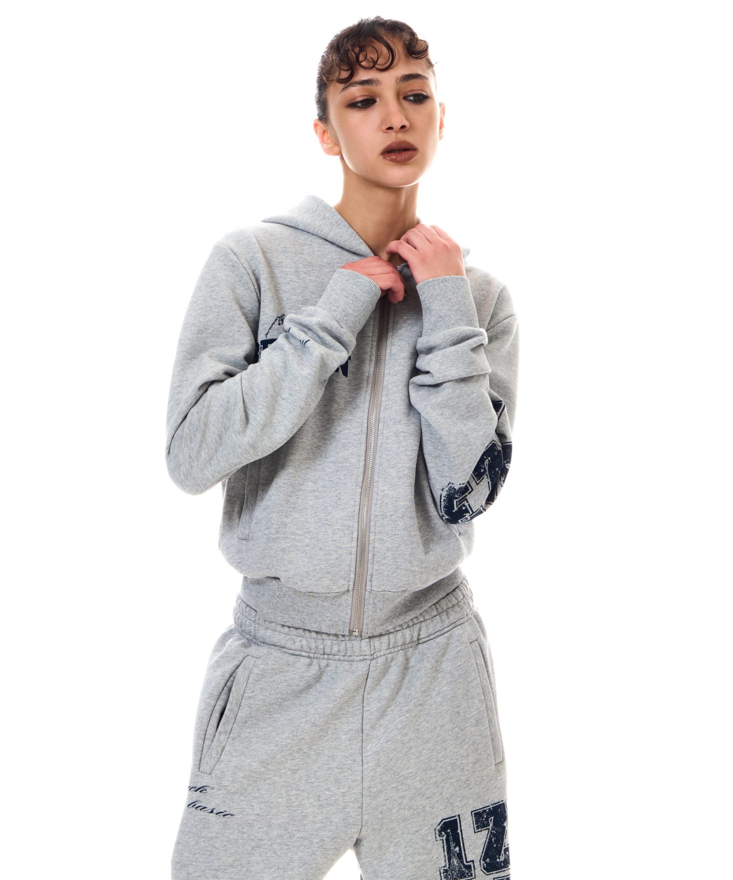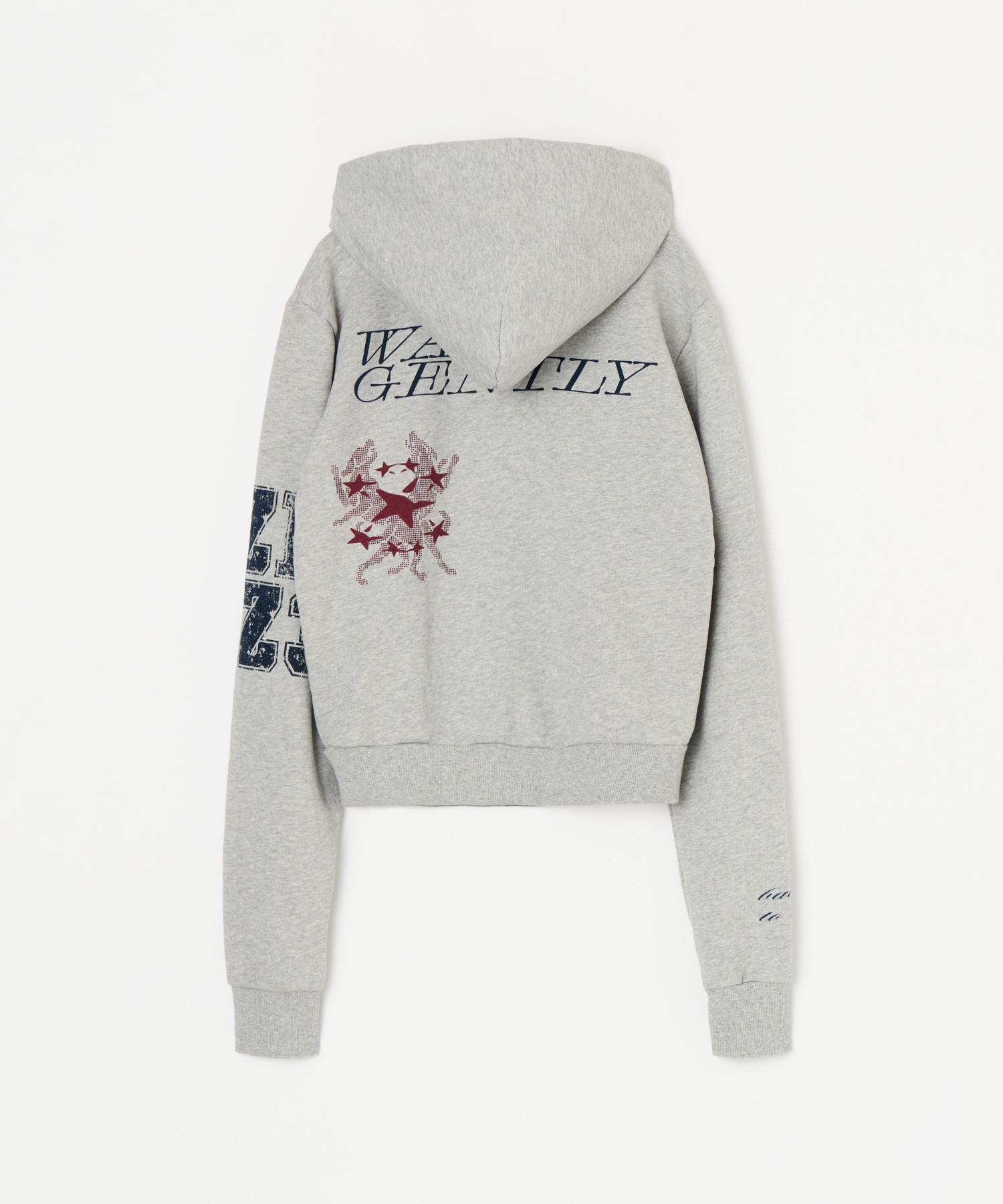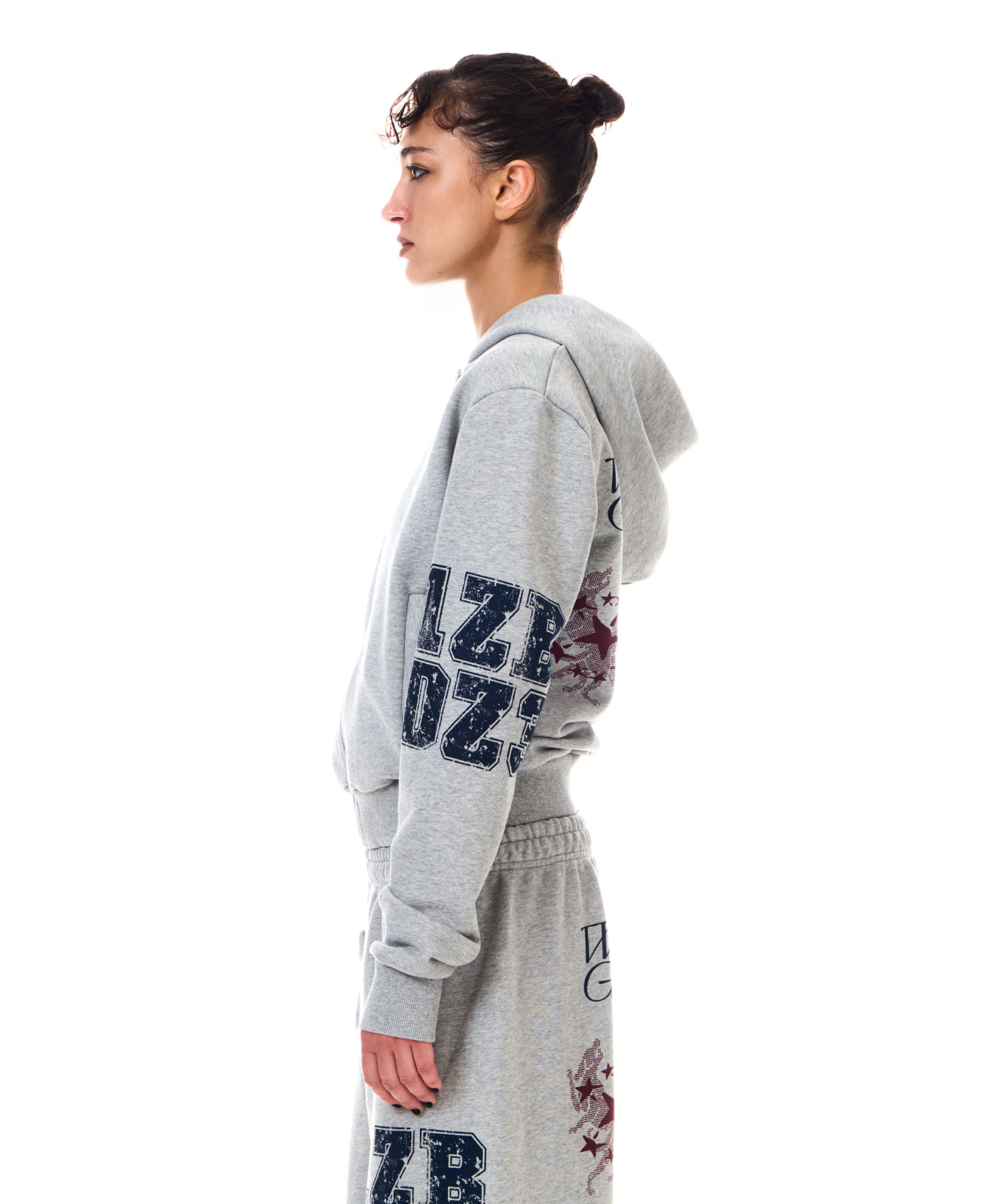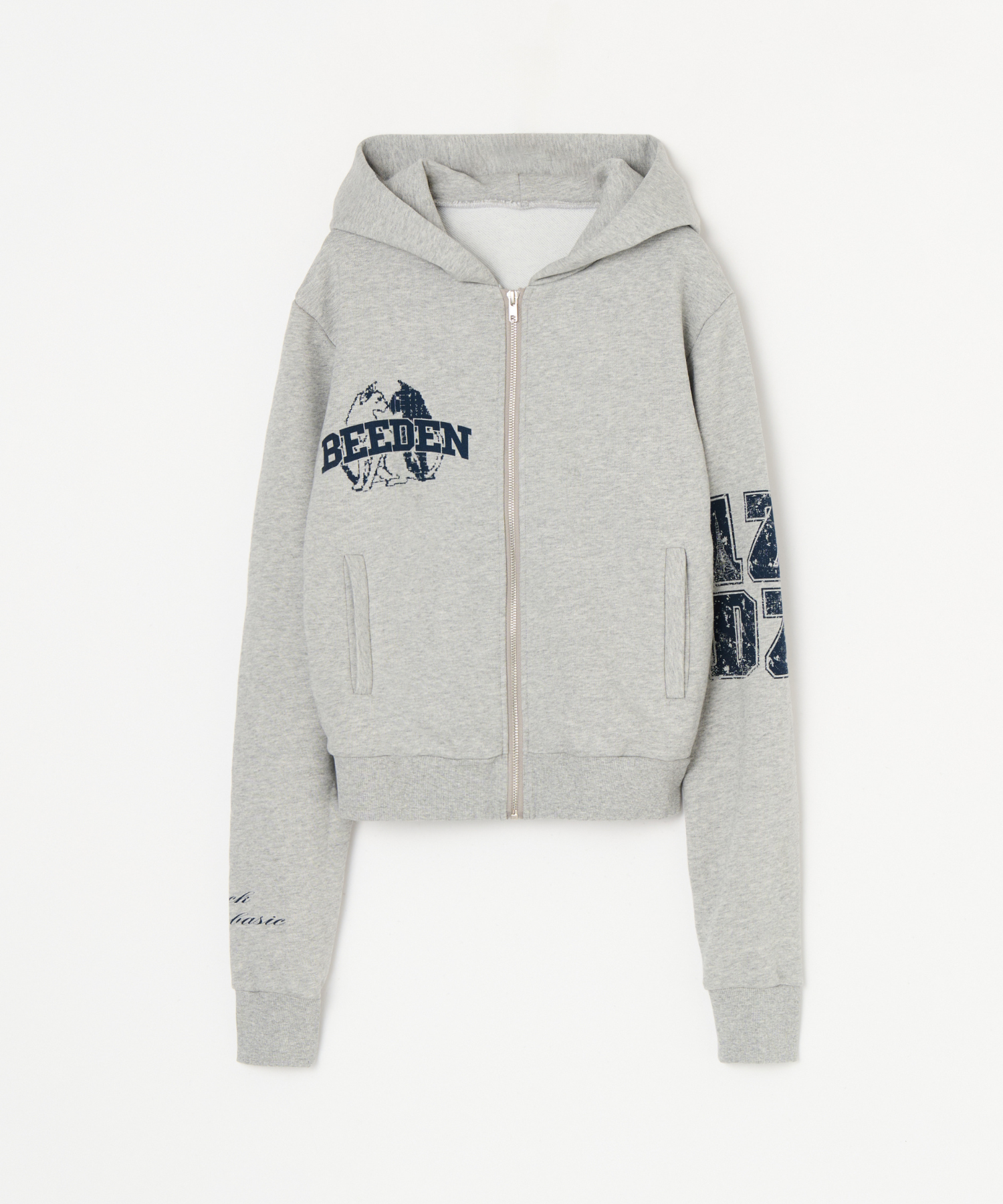 ランダムに配置されたオリジナルグラフィックプリントが斬新なジップアップトップス。