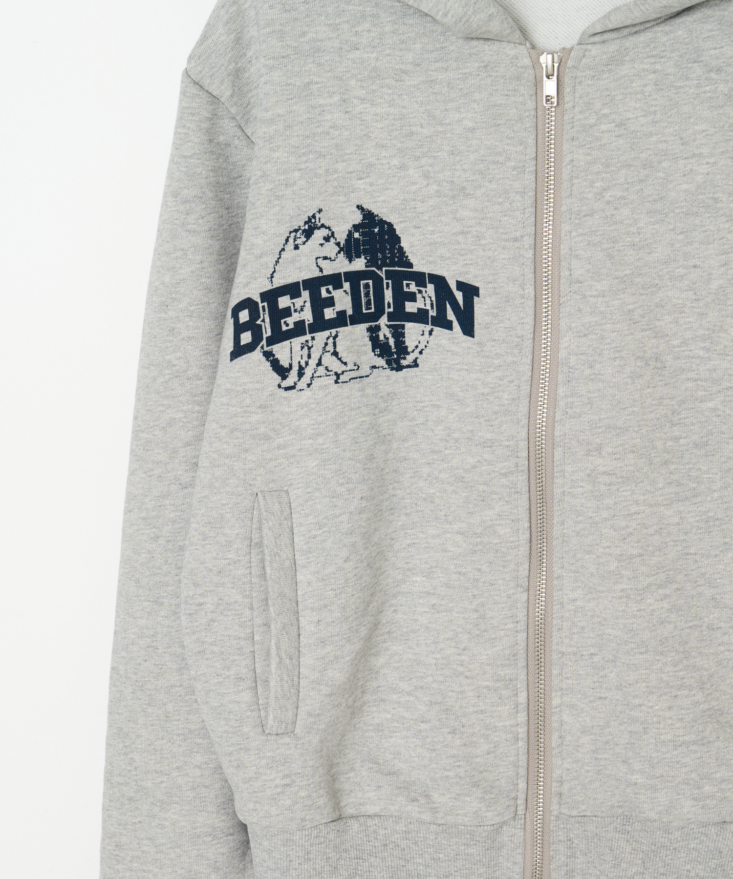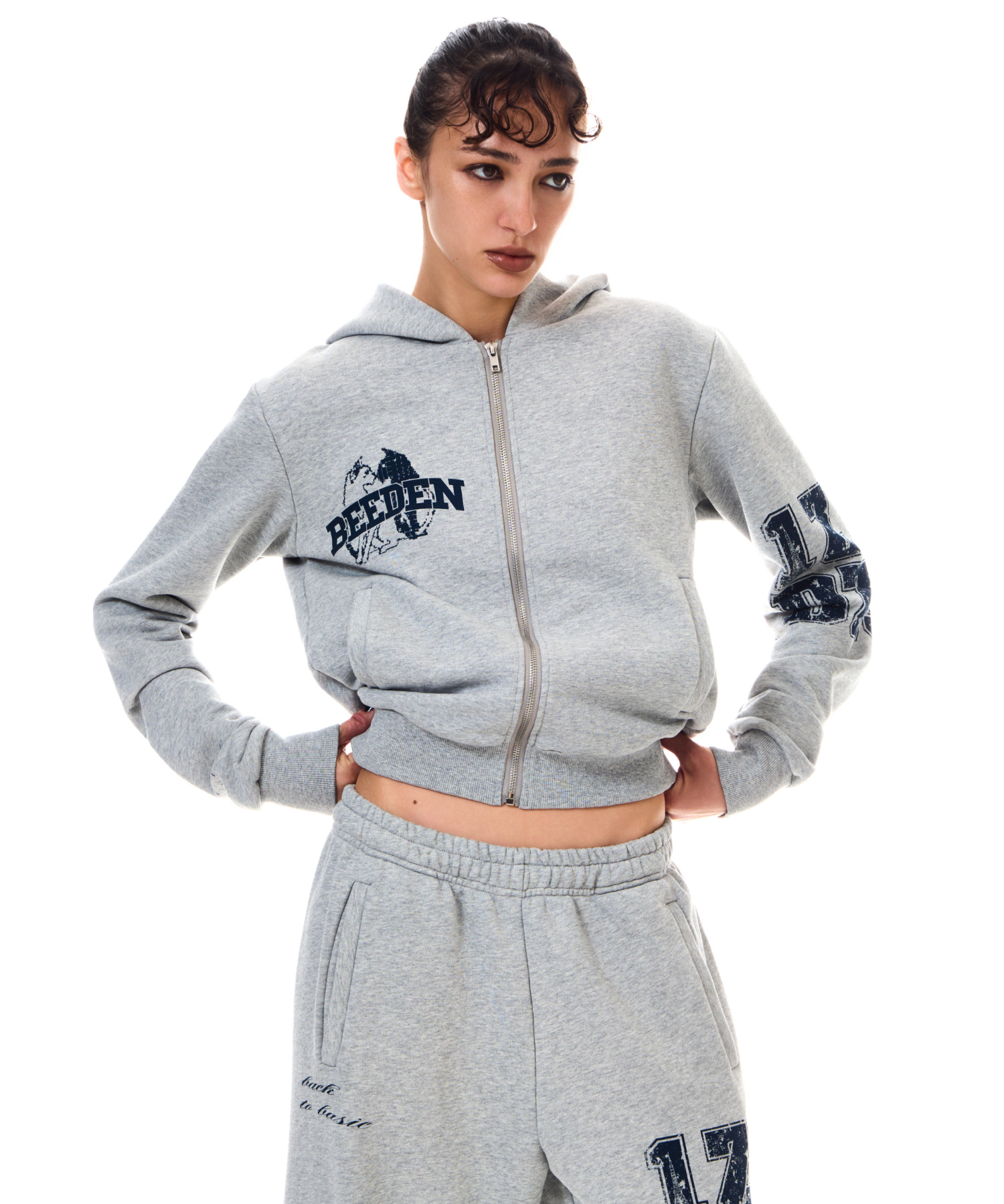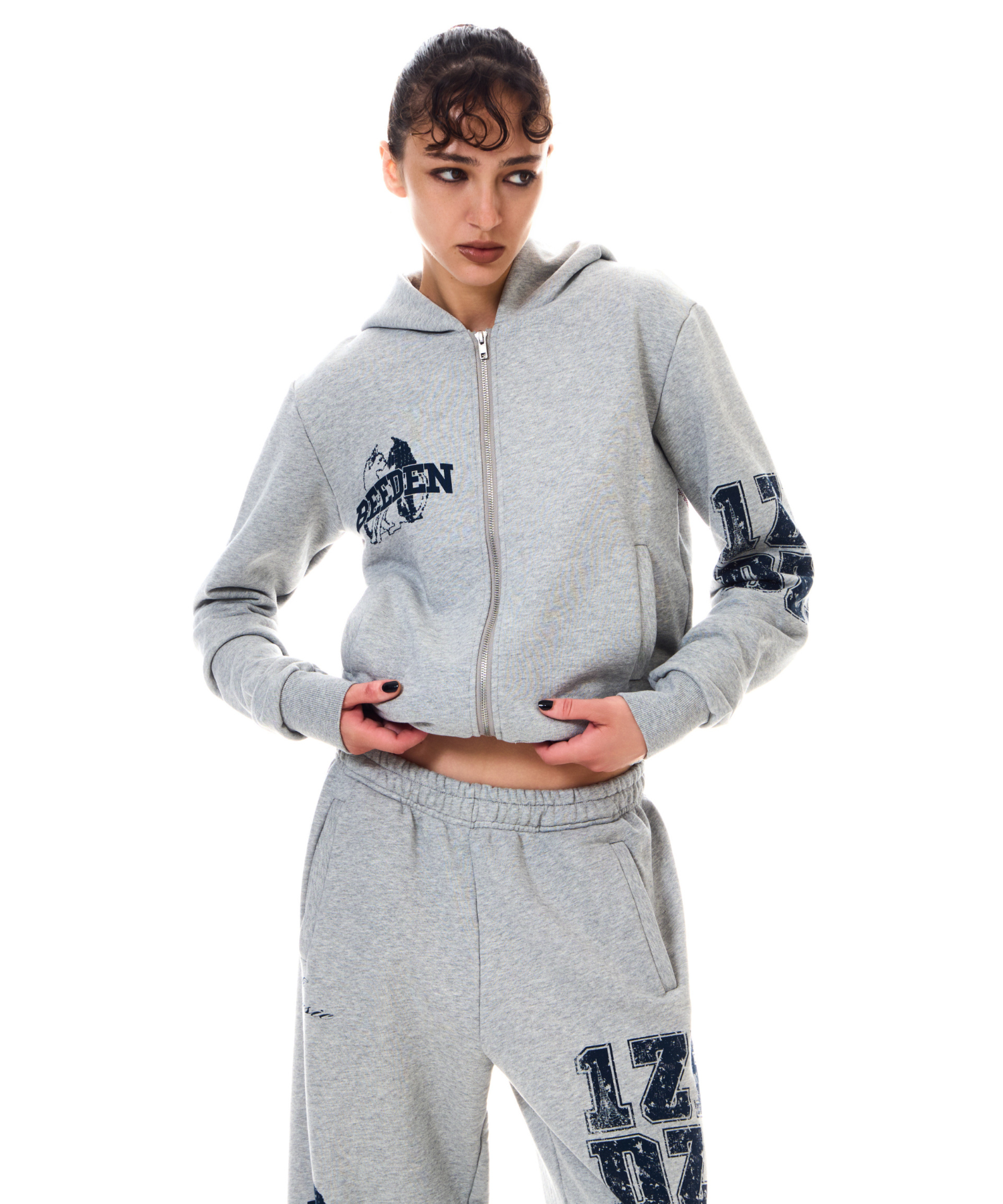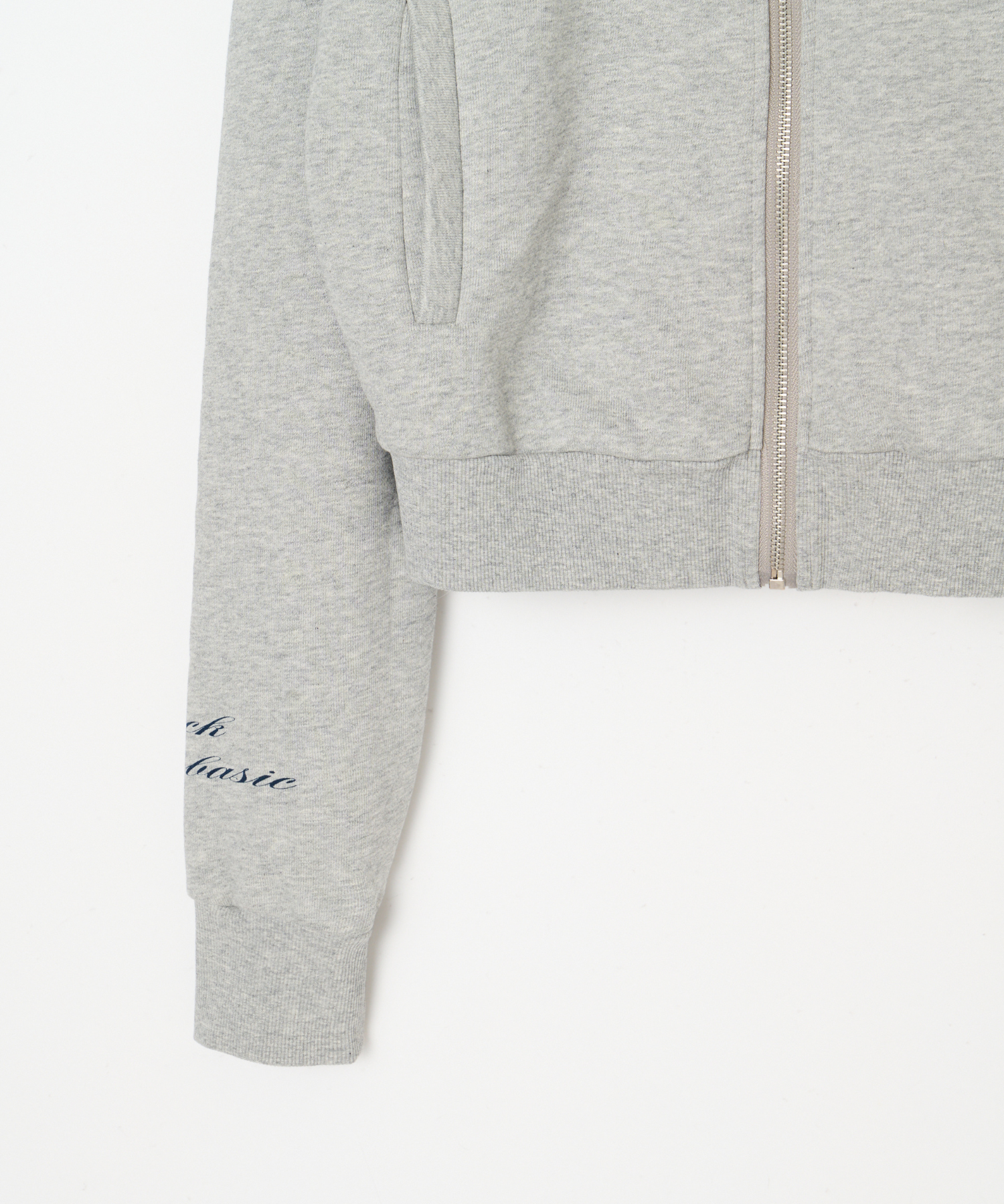 ランダムに配置されたオリジナルグラフィックプリントが斬新なジップアップトップス。