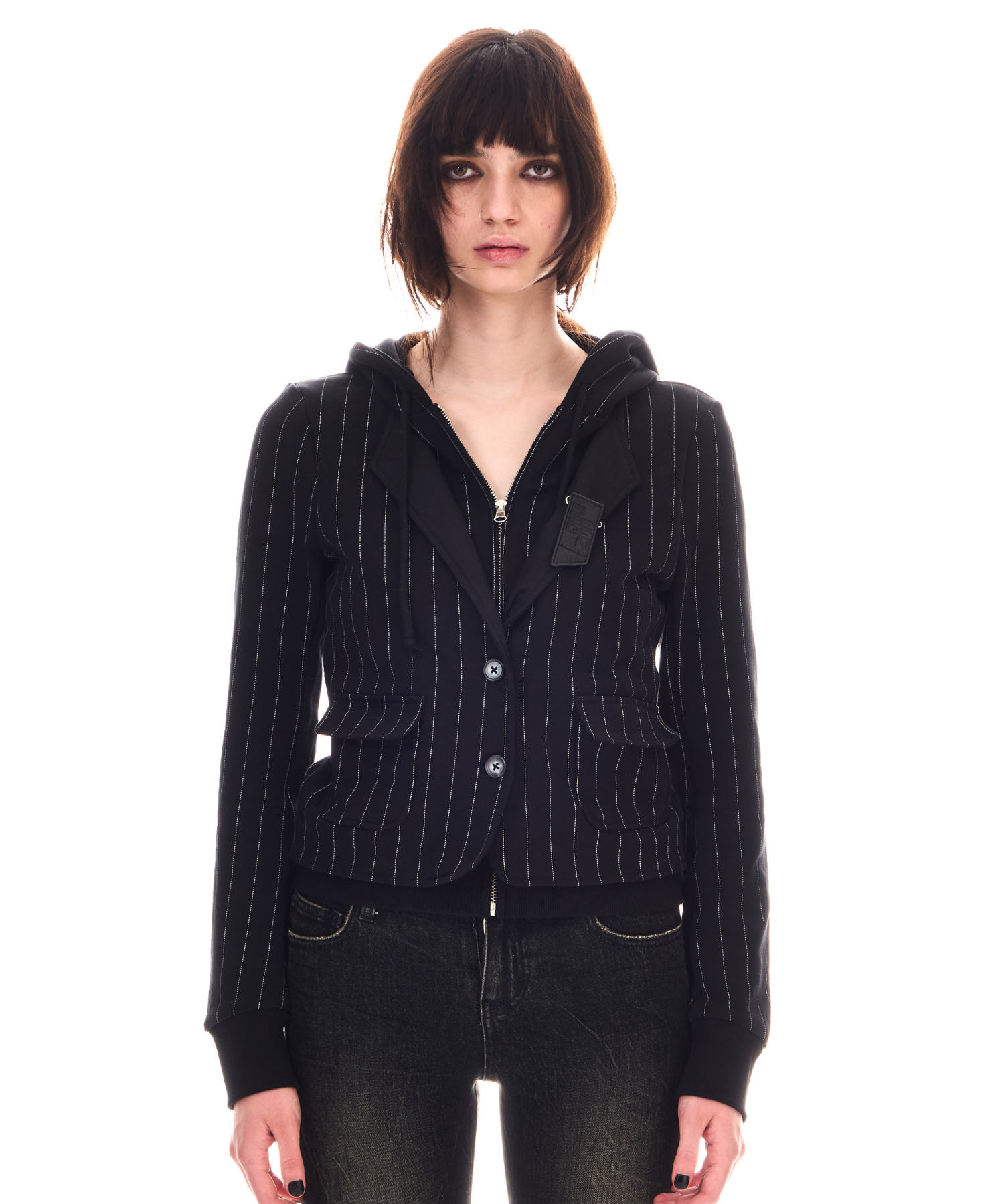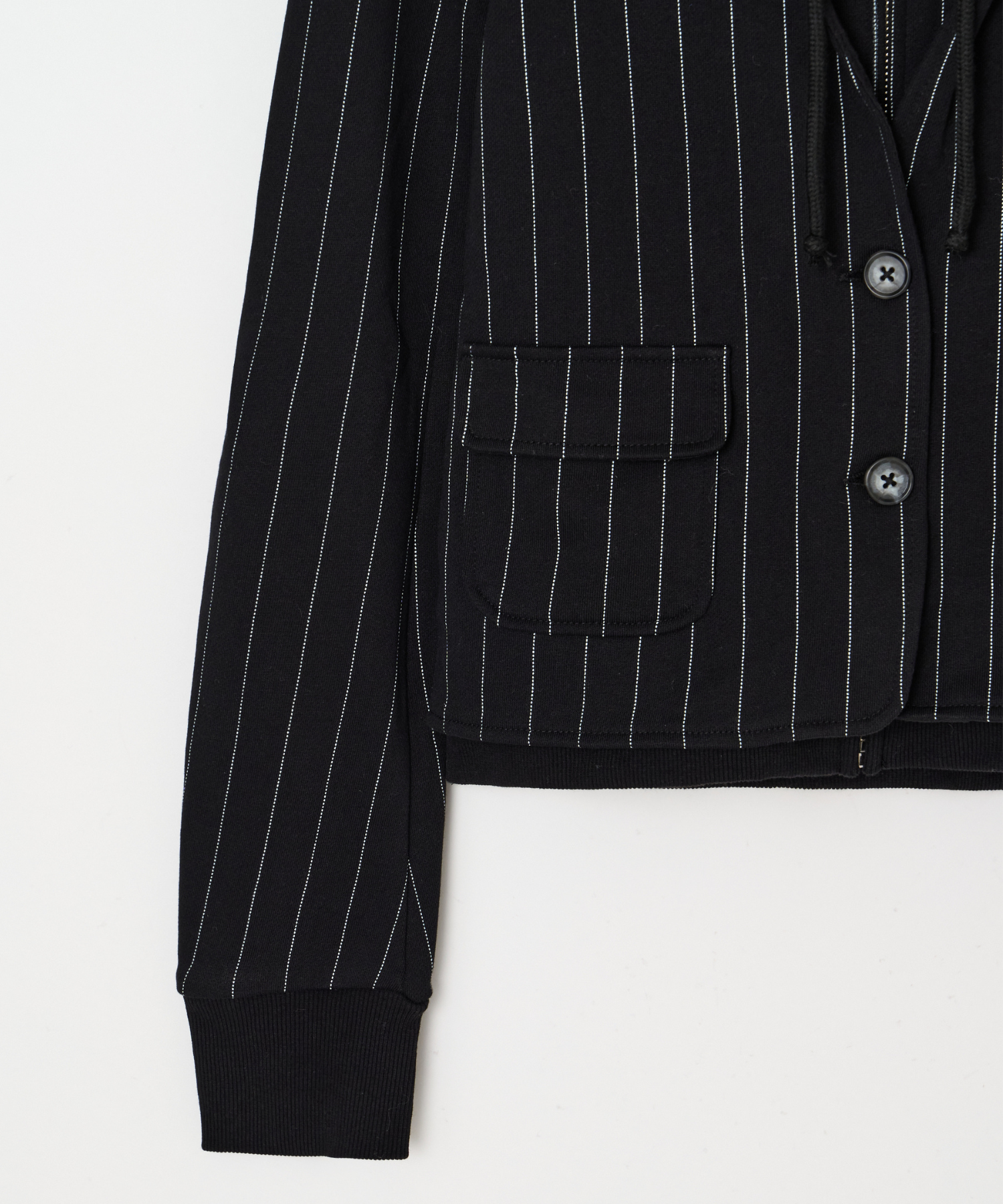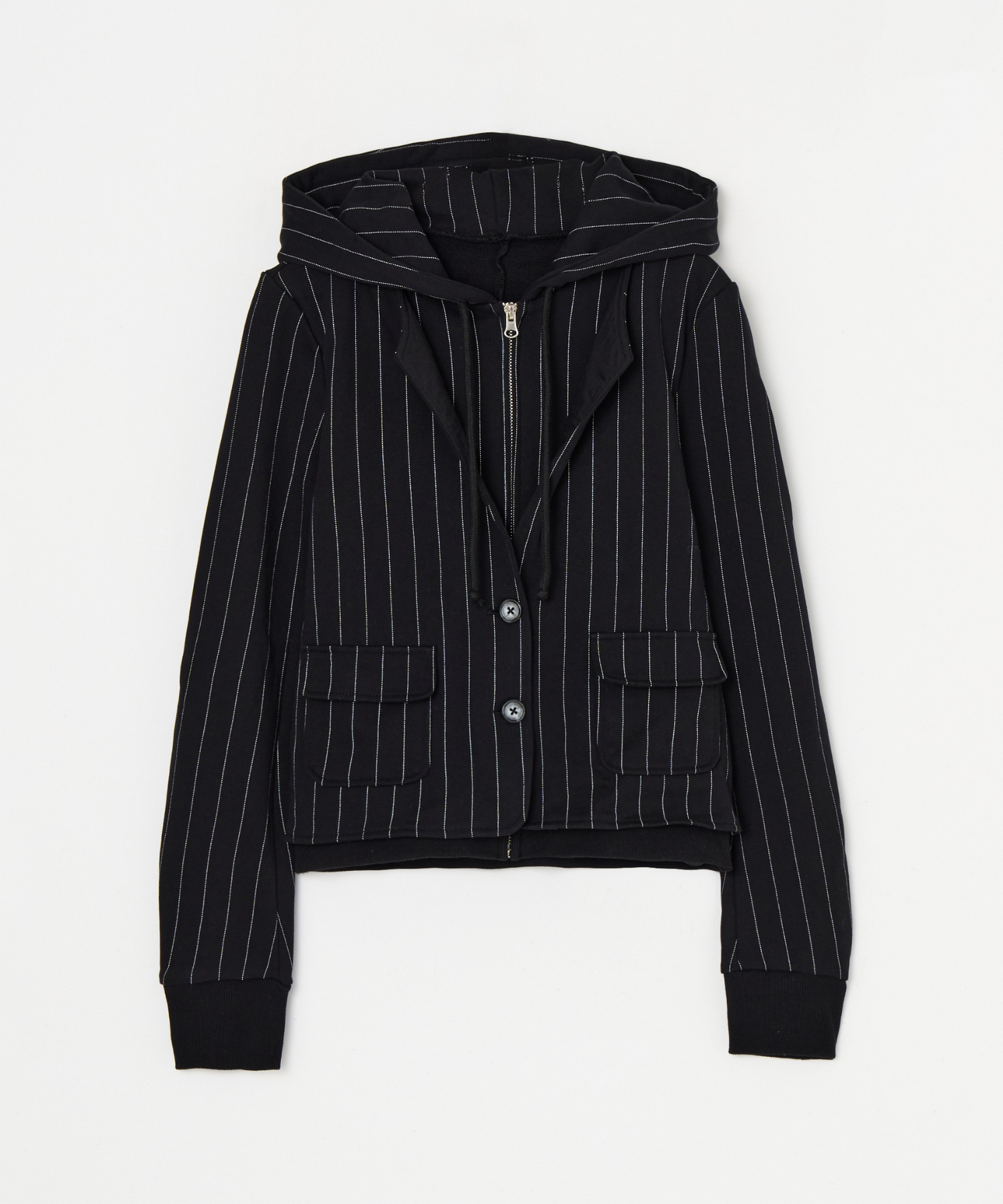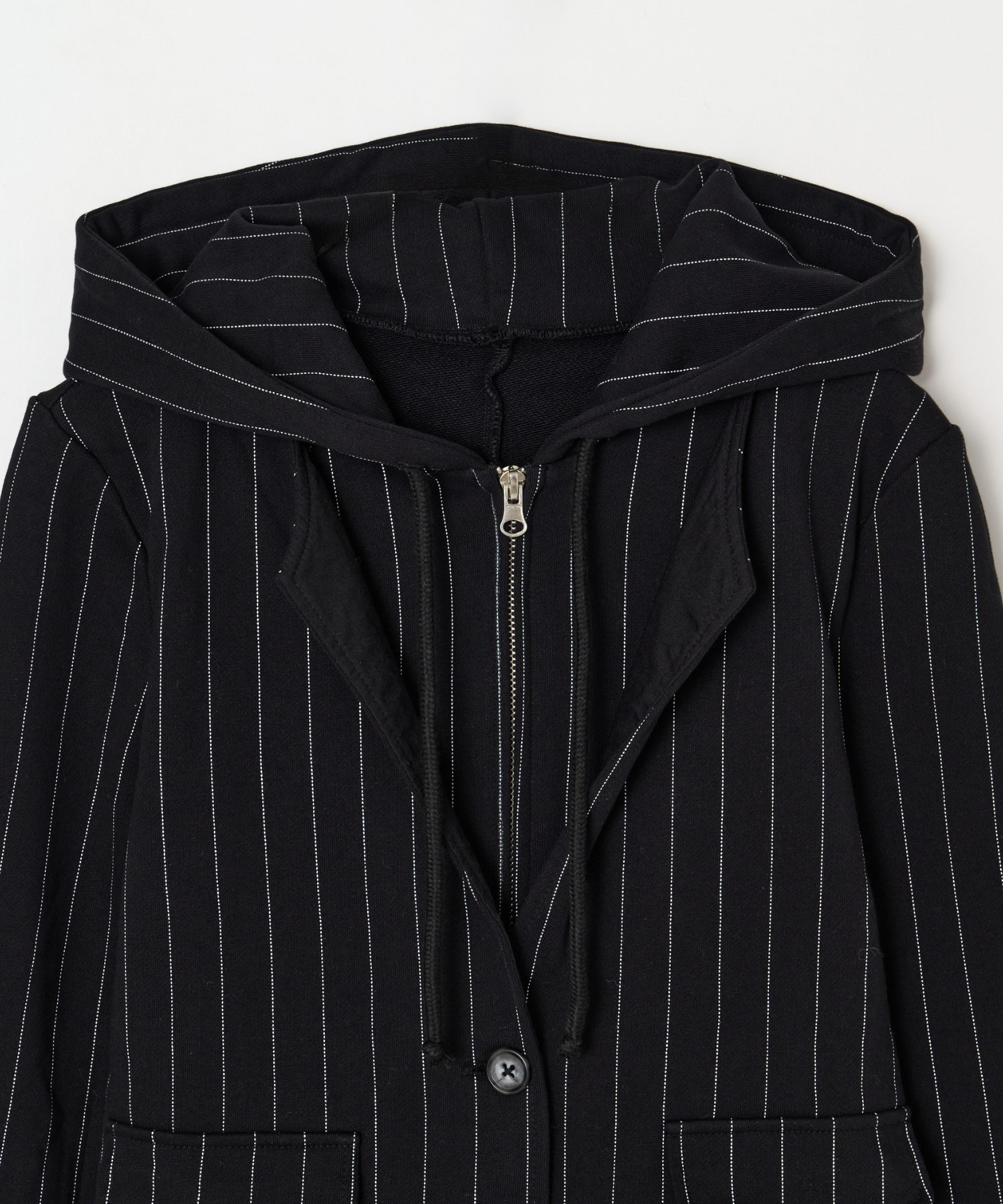 ジップアップフーディーとジャケットをドッキングし、レイヤードしたようなスタイリングが1枚で叶う他にはないトップス。