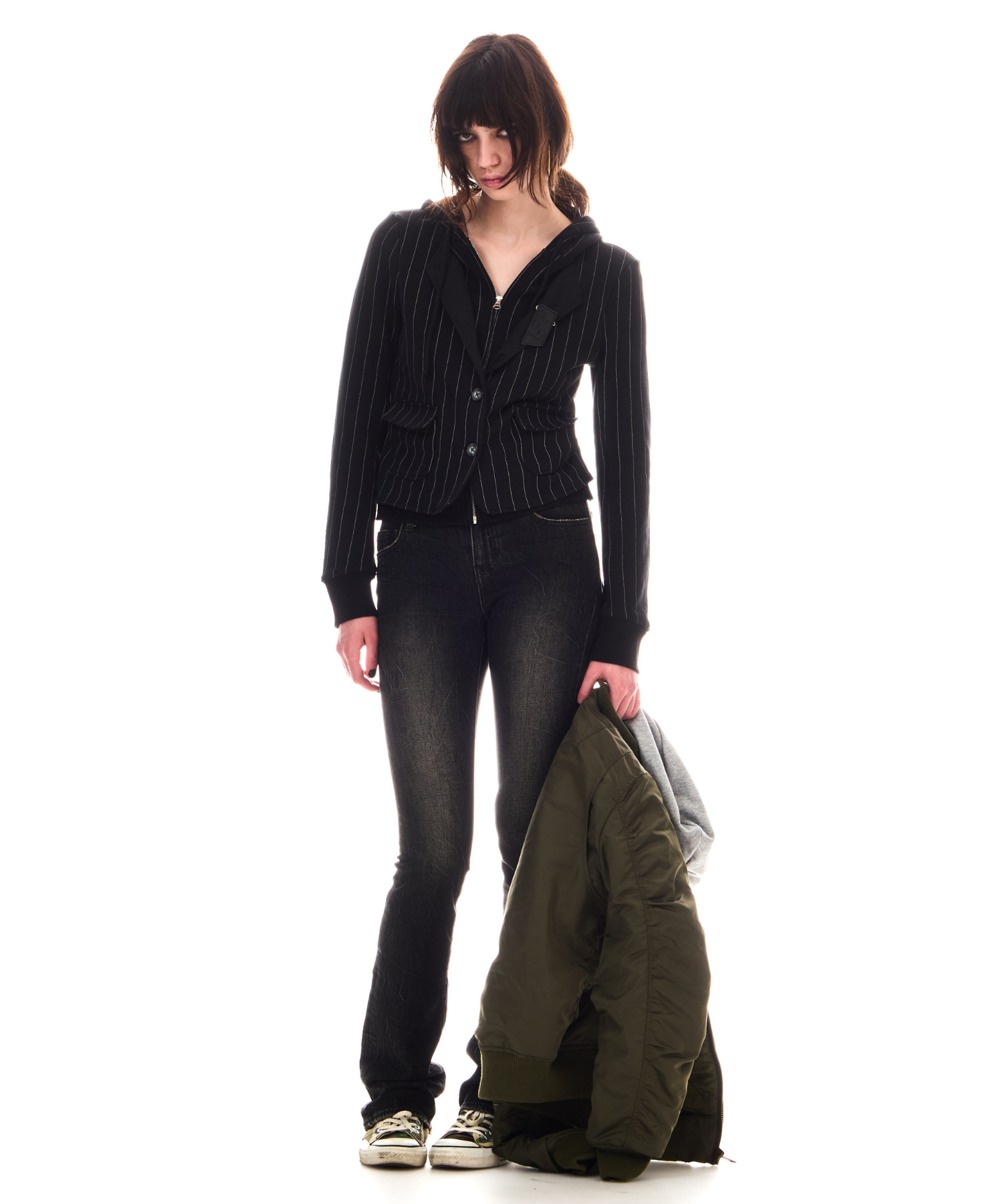 ジャケットのボタンを外したり、ジップを開けたりすることで様々なバランスで着用でき、その日の気分で印象を変えていただけます。