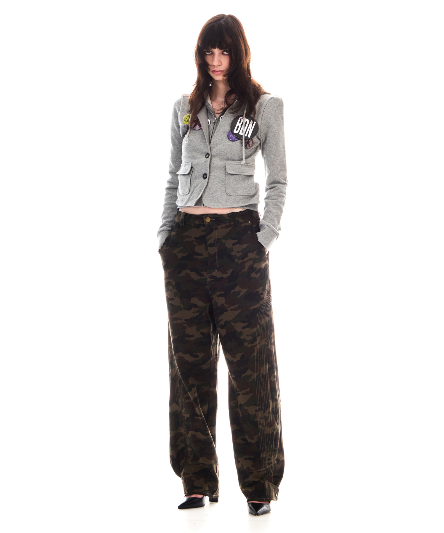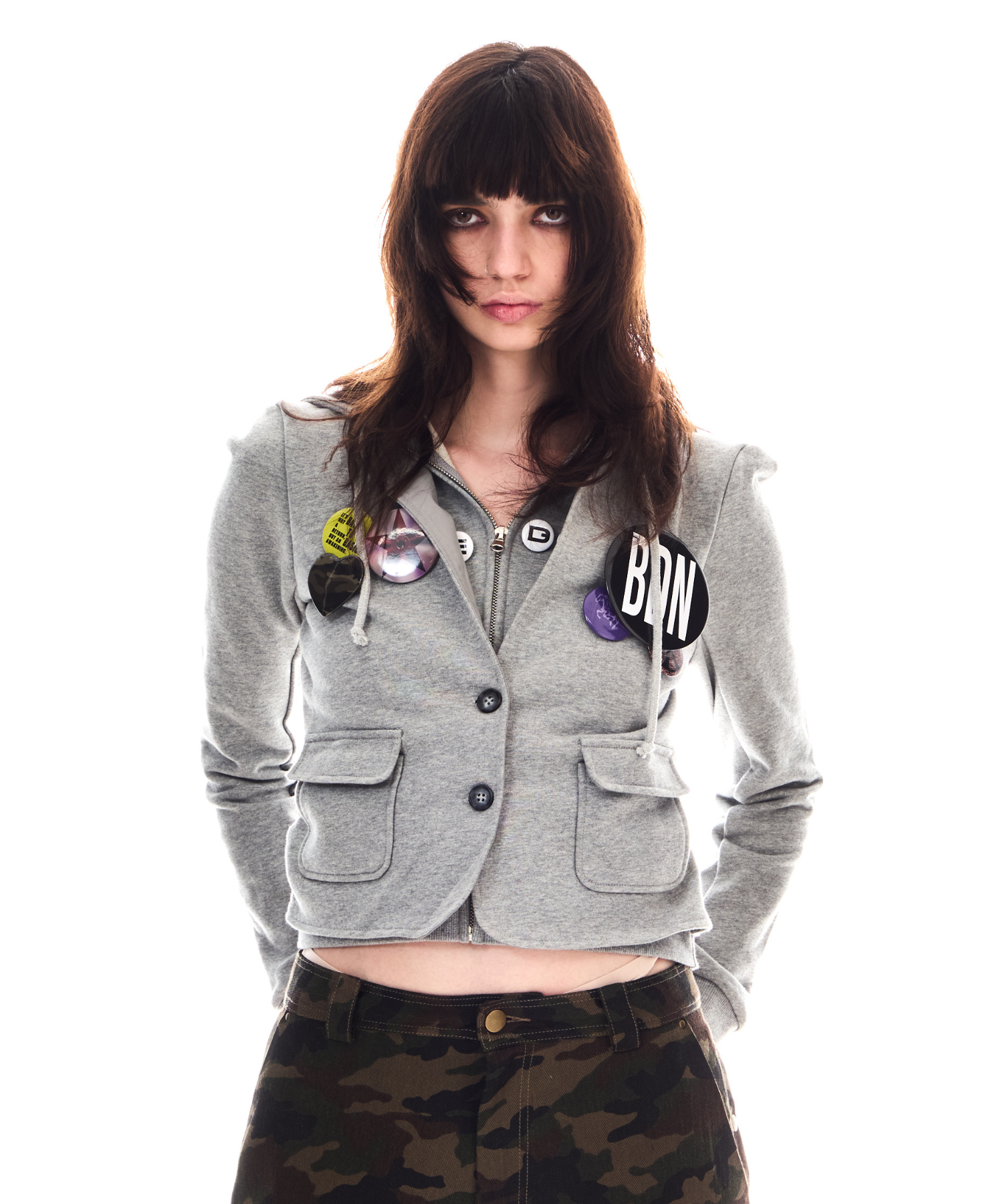敢えて裏毛でカジュアルに仕上げ、エッジの効いたアイテムですがラフで着用しやすい1着に仕上げました。