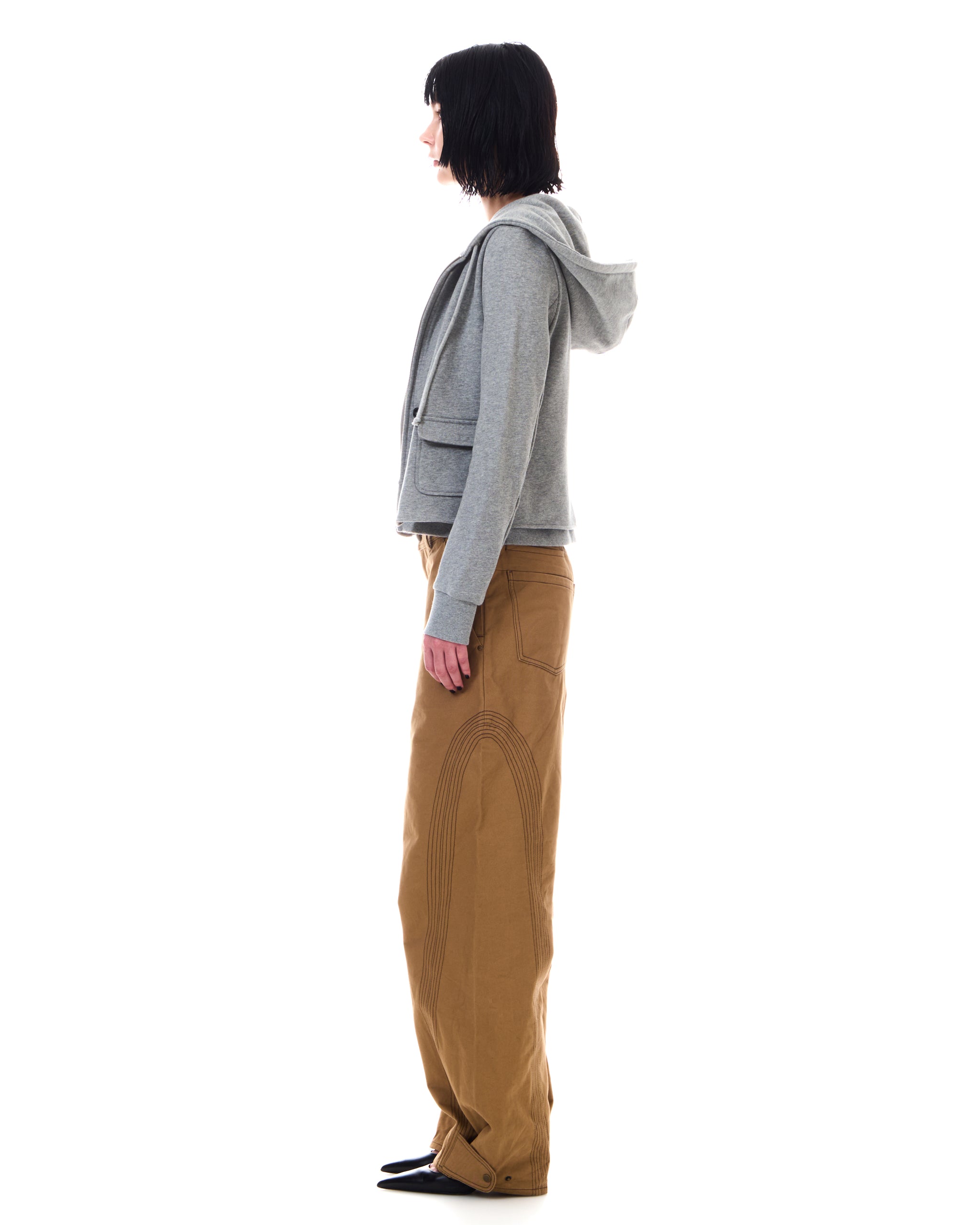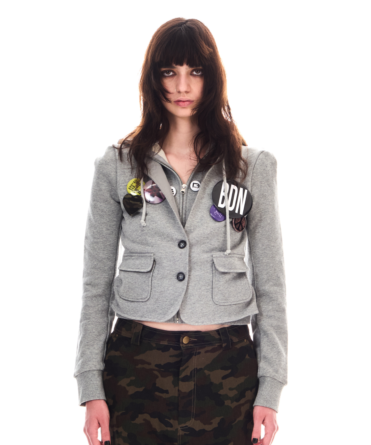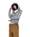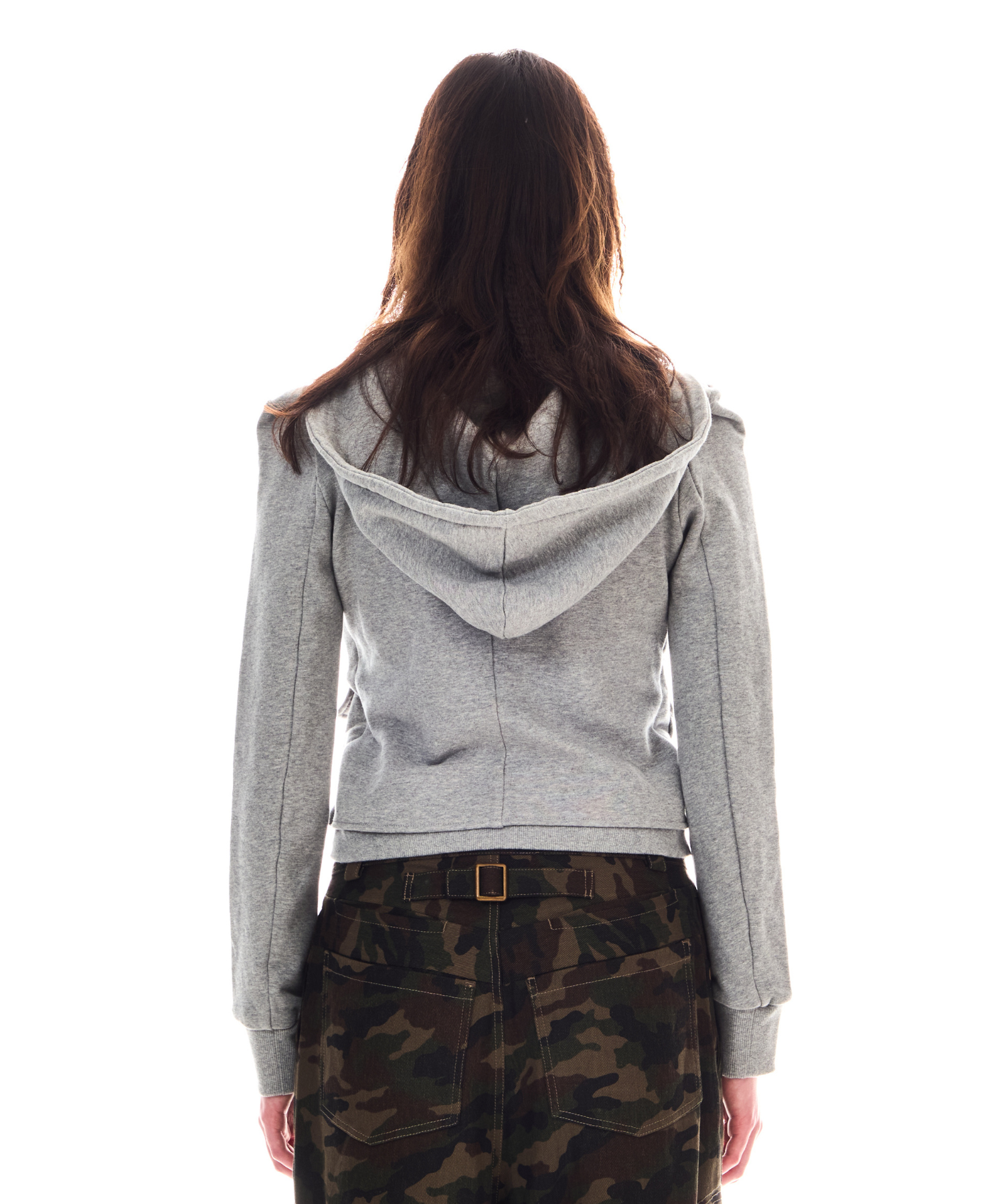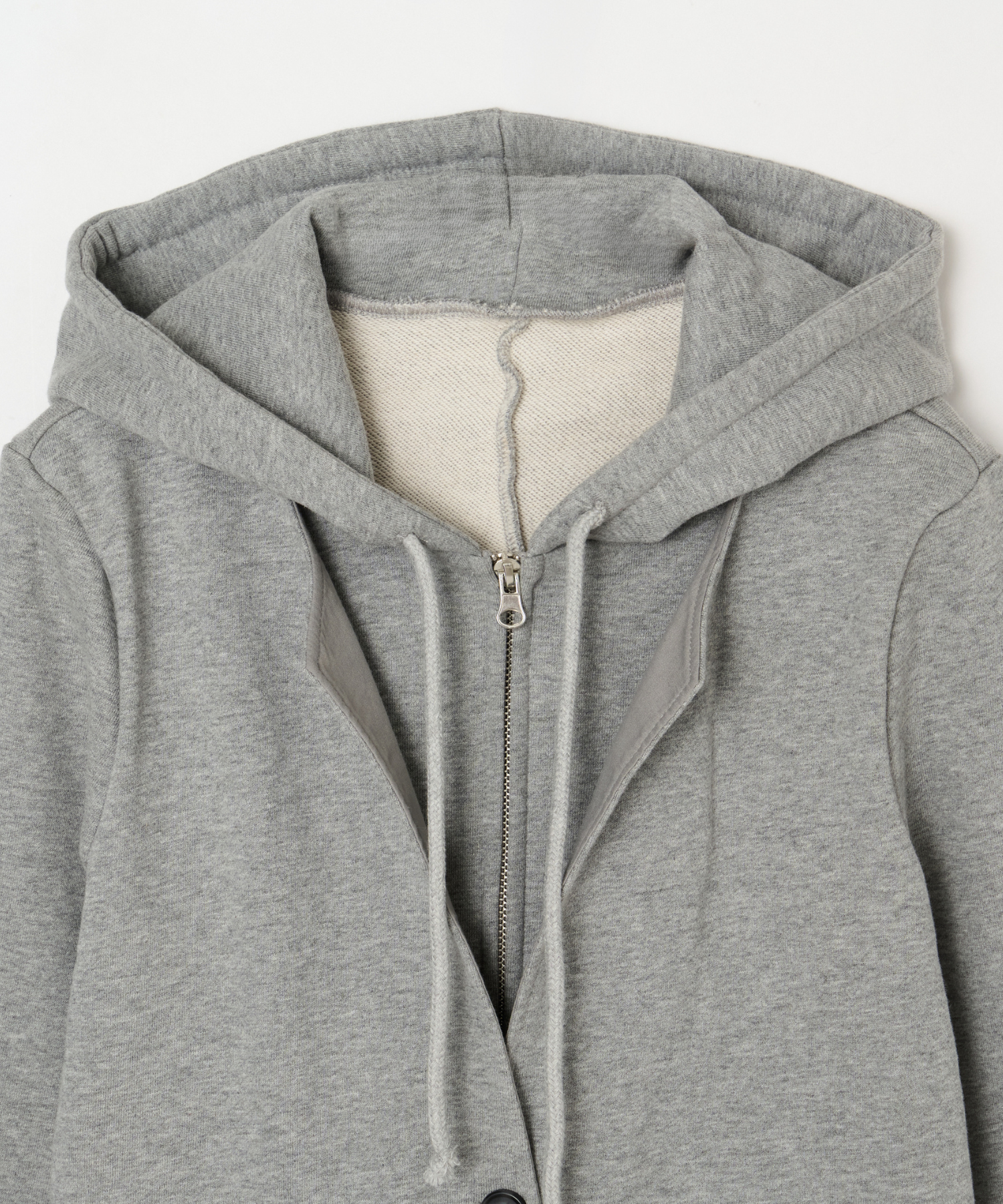 ジップアップフーディーとジャケットをドッキングし、レイヤードしたようなスタイリングが1枚で叶う他にはないトップス。