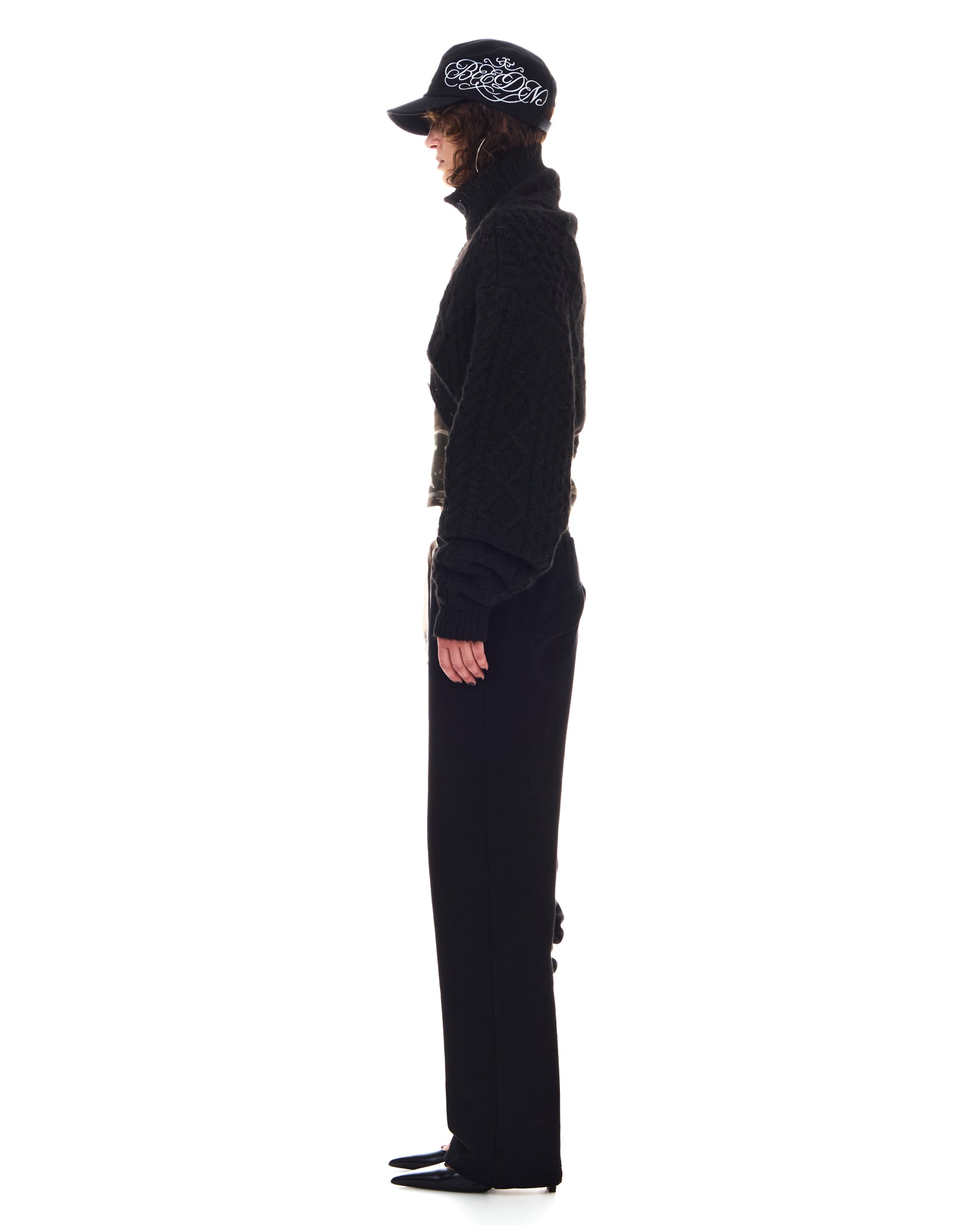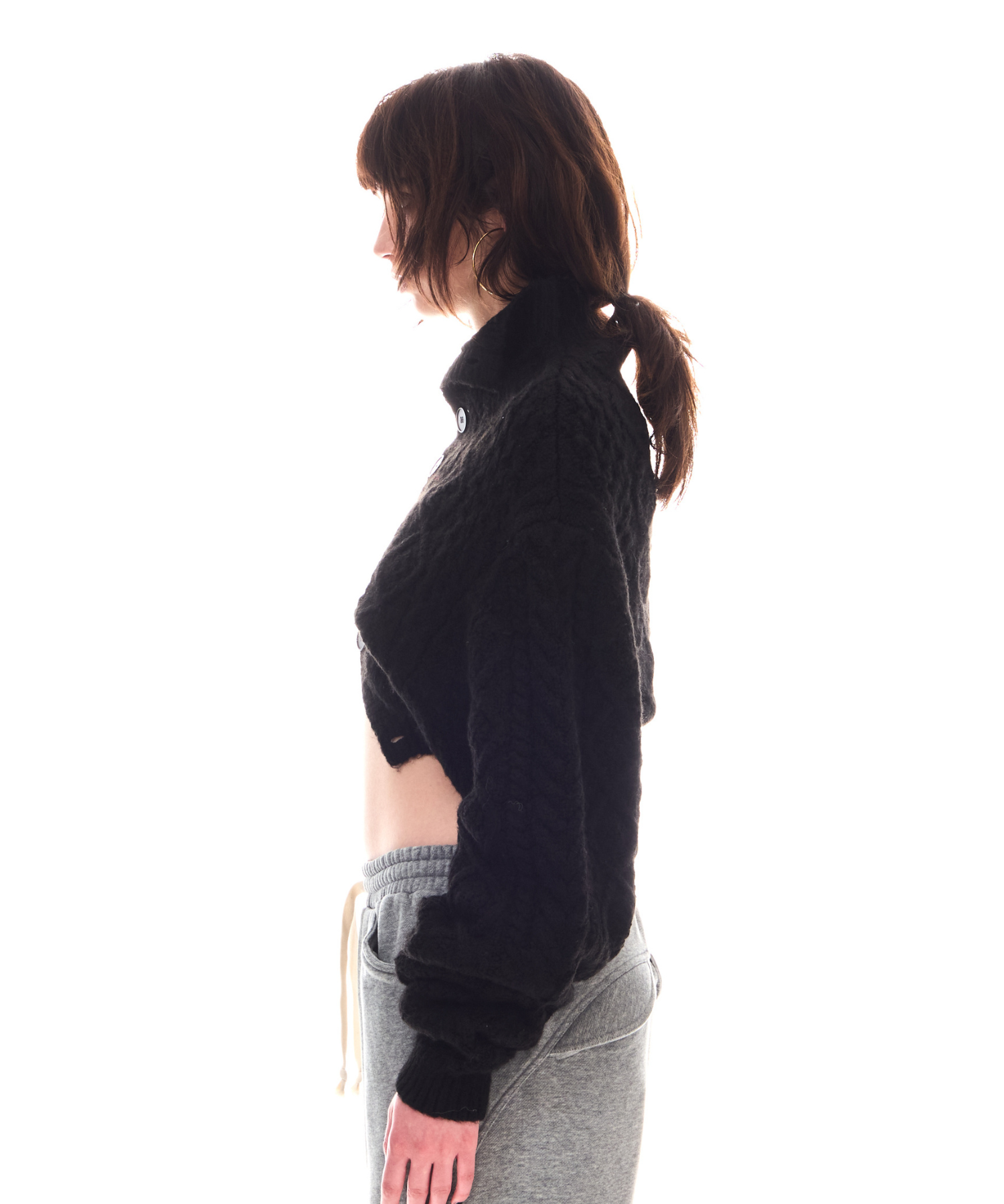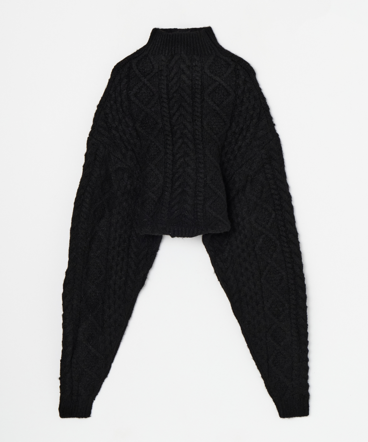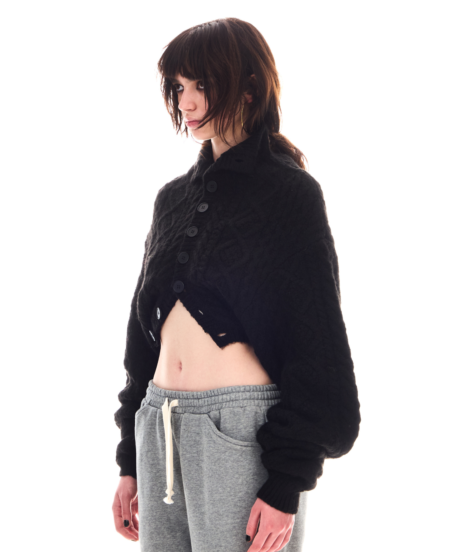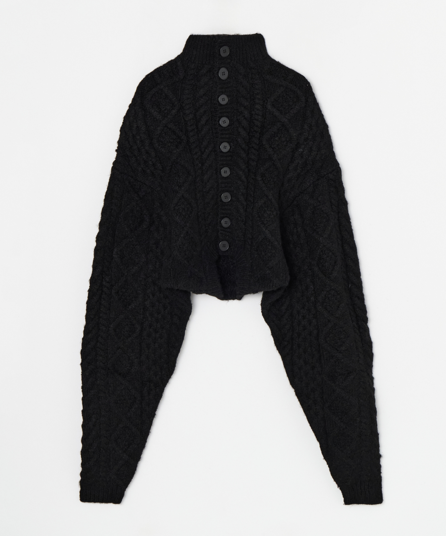 ボリュームと着丈のバランスにこだわったケーブルニットボレロ。