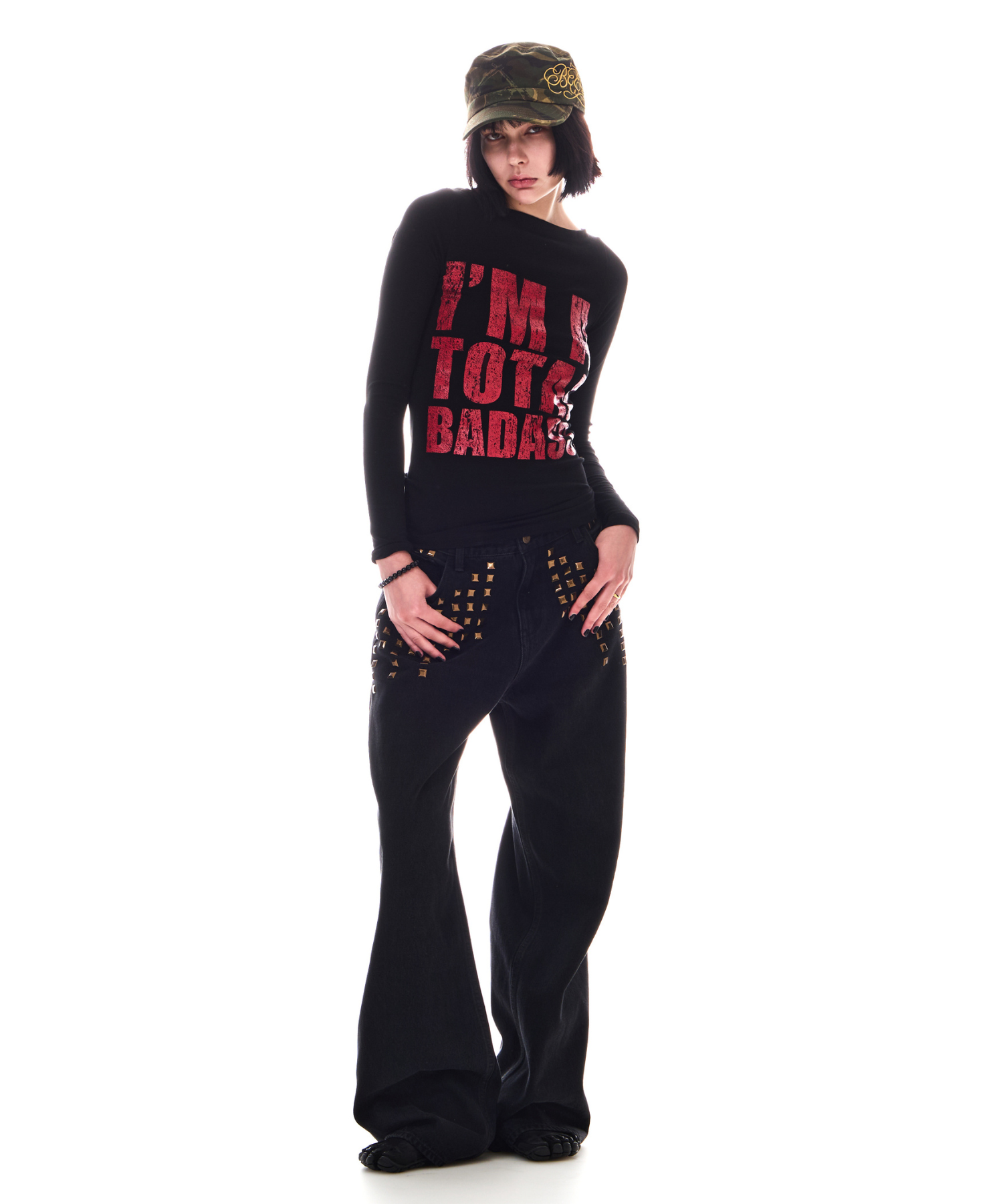 ヘルシーかつエッジの効いたスタッズデザインがポイントのセミルーズデニム。
