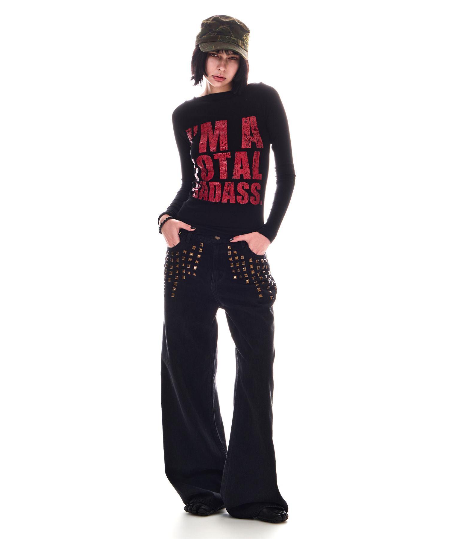 HOME/DENIM/METAL STUDS SEMI LOOSE DENIM