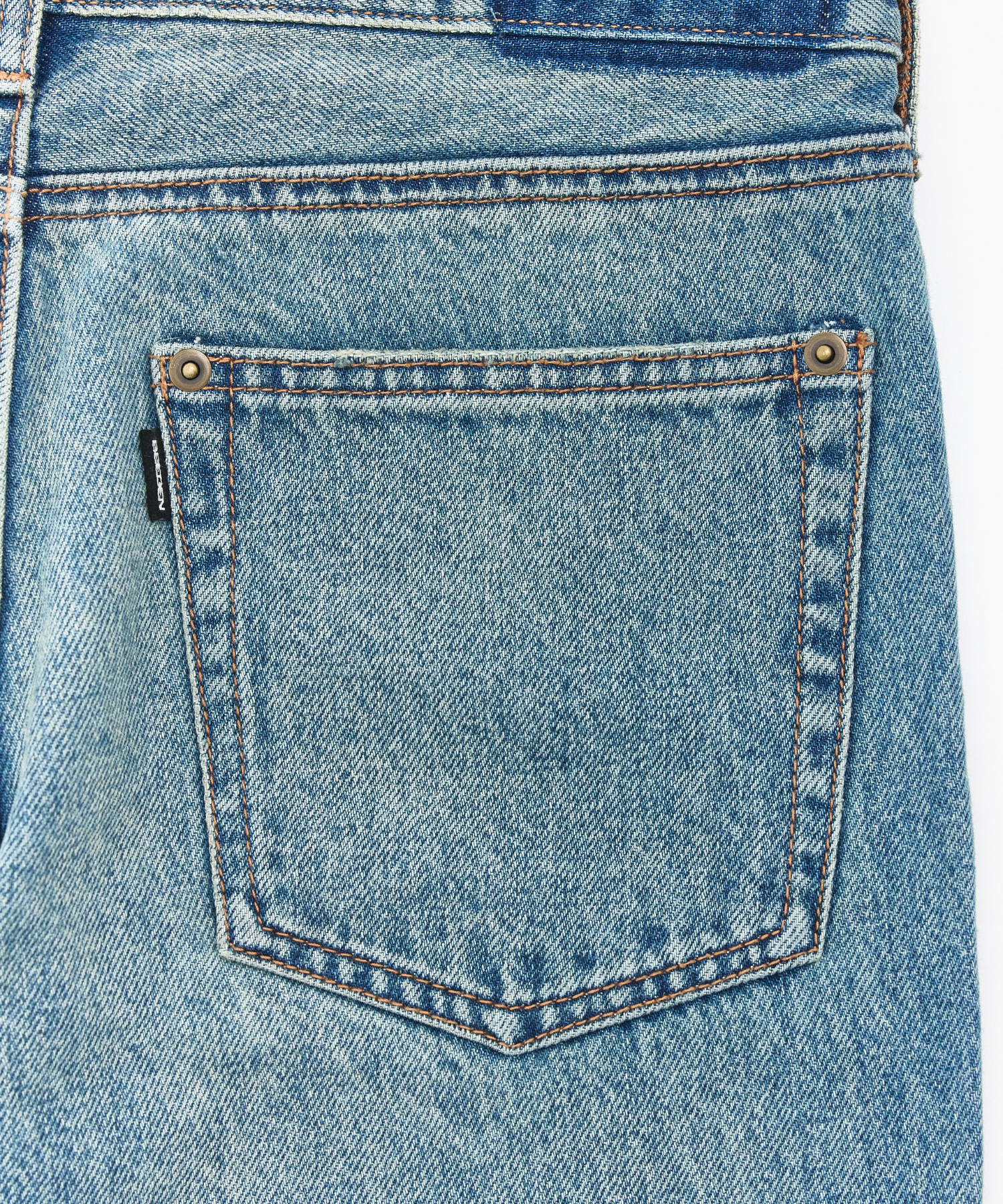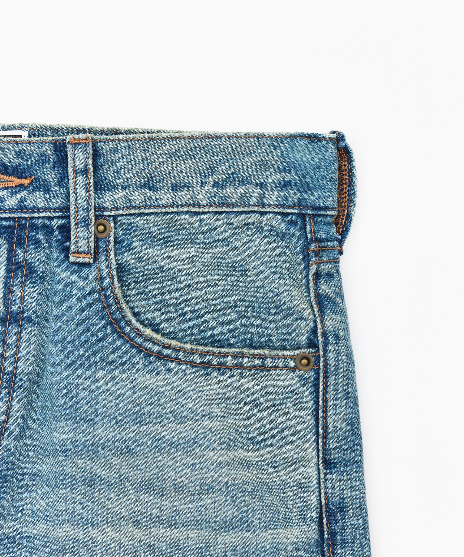 ヴィンテージライクなウォッシュとクラッシュ加工を施したデニム。